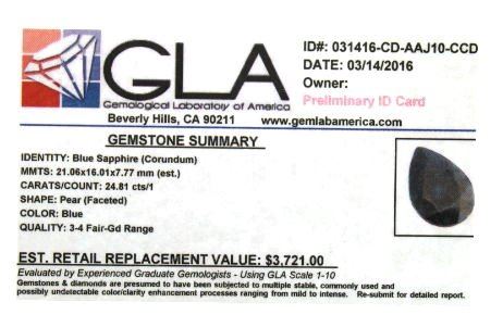 Blue Sapphire (Corundum) GLA Certified 24.81 cts.