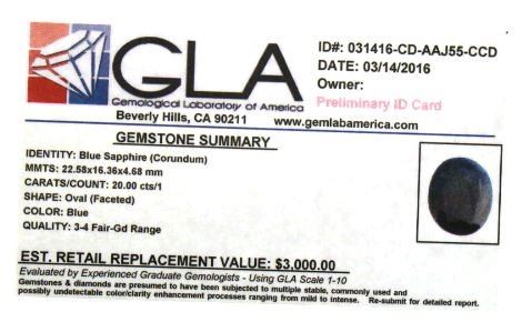 Blue Sapphire (Corundum) GLA Certified 39.31cts.