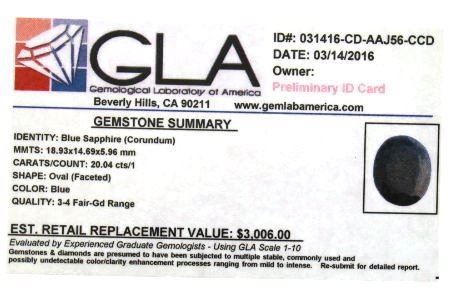 Blue Sapphire (Corundum) GLA Certified 19.64 cts.