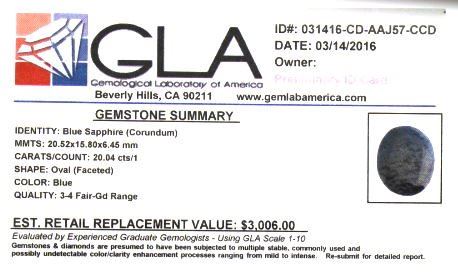 Blue Sapphire (Corundum) GLA Certified 20.04 cts.