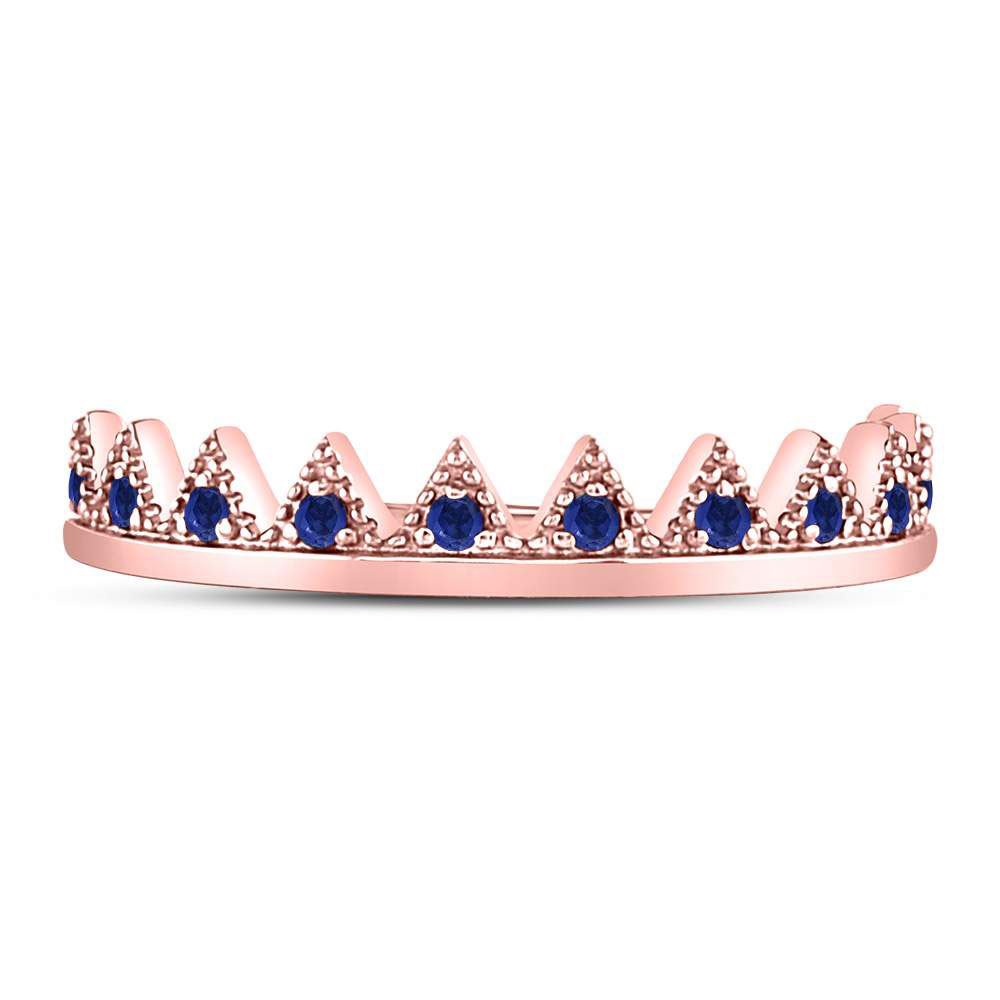 table {border-collapse: collapse; width: 100%; font-size: 1.2em; border: 1px lightgrey solid;} th, td {text-align: left; padding: 5px;} tr:nth-child(odd) {background-color: #efefee;} tr {border-bottom: 1px lightgrey solid;} Metal Type10kt Rose Gold Item Number127755 StyleStackableRing Size7Carats Total Weight *1/10 Ct.t.w.Primary Gem TypeNatural Blue SapphirePrimary Gem ShapeRoundPrimary Gem Color / ClarityBlue / I1Gram Weight1.18 grams (approximately)