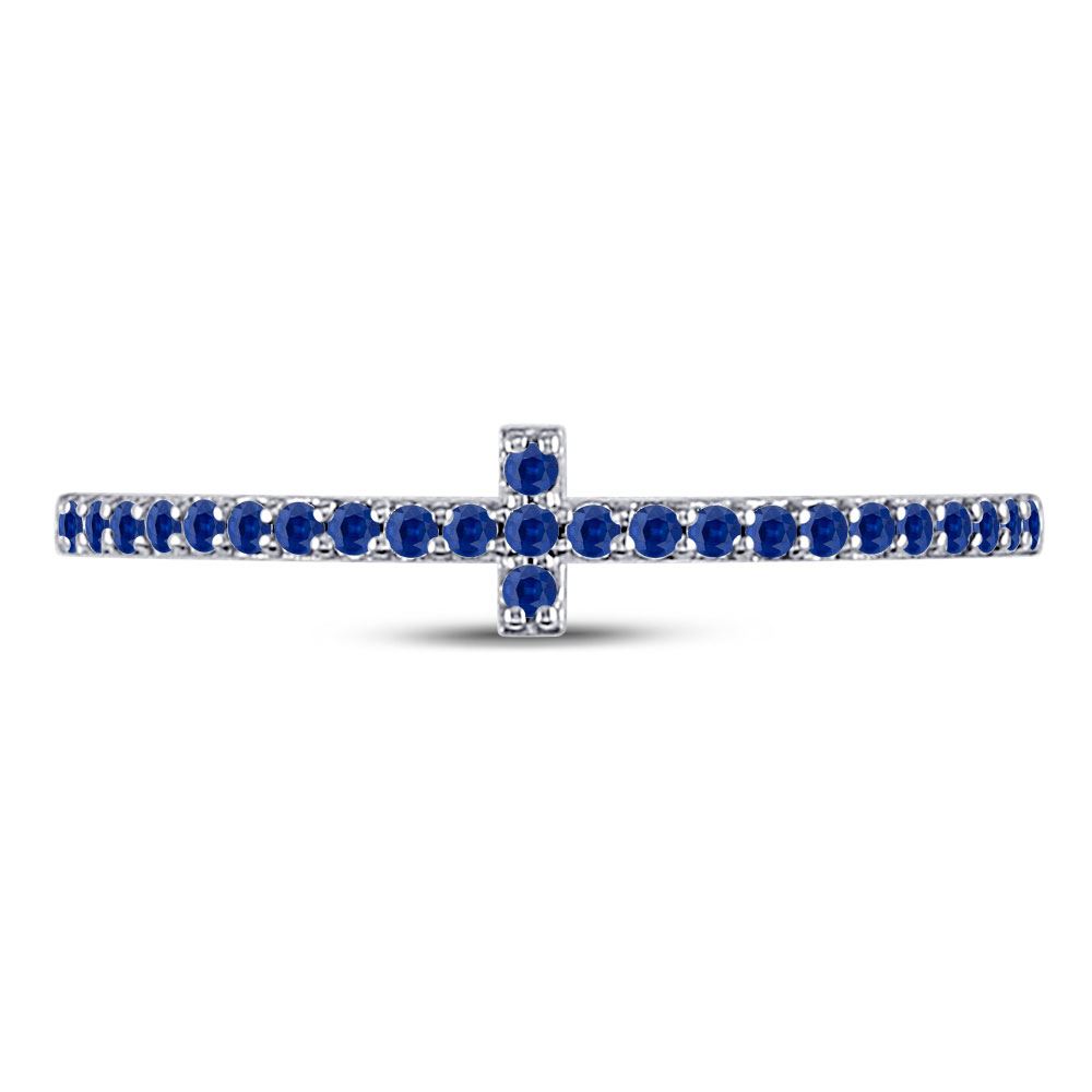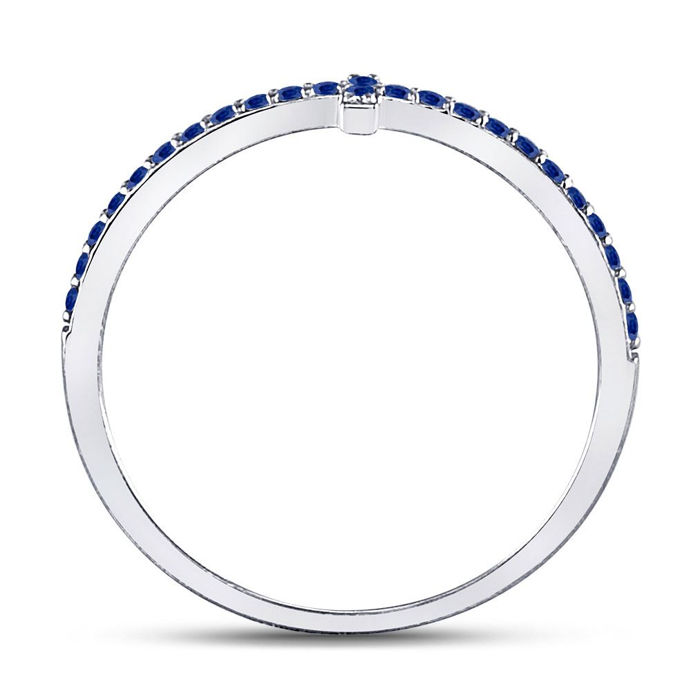 10kt White Gold Womens Round Blue Sapphire Cross Stackable Band Ring 1/6 Cttw
