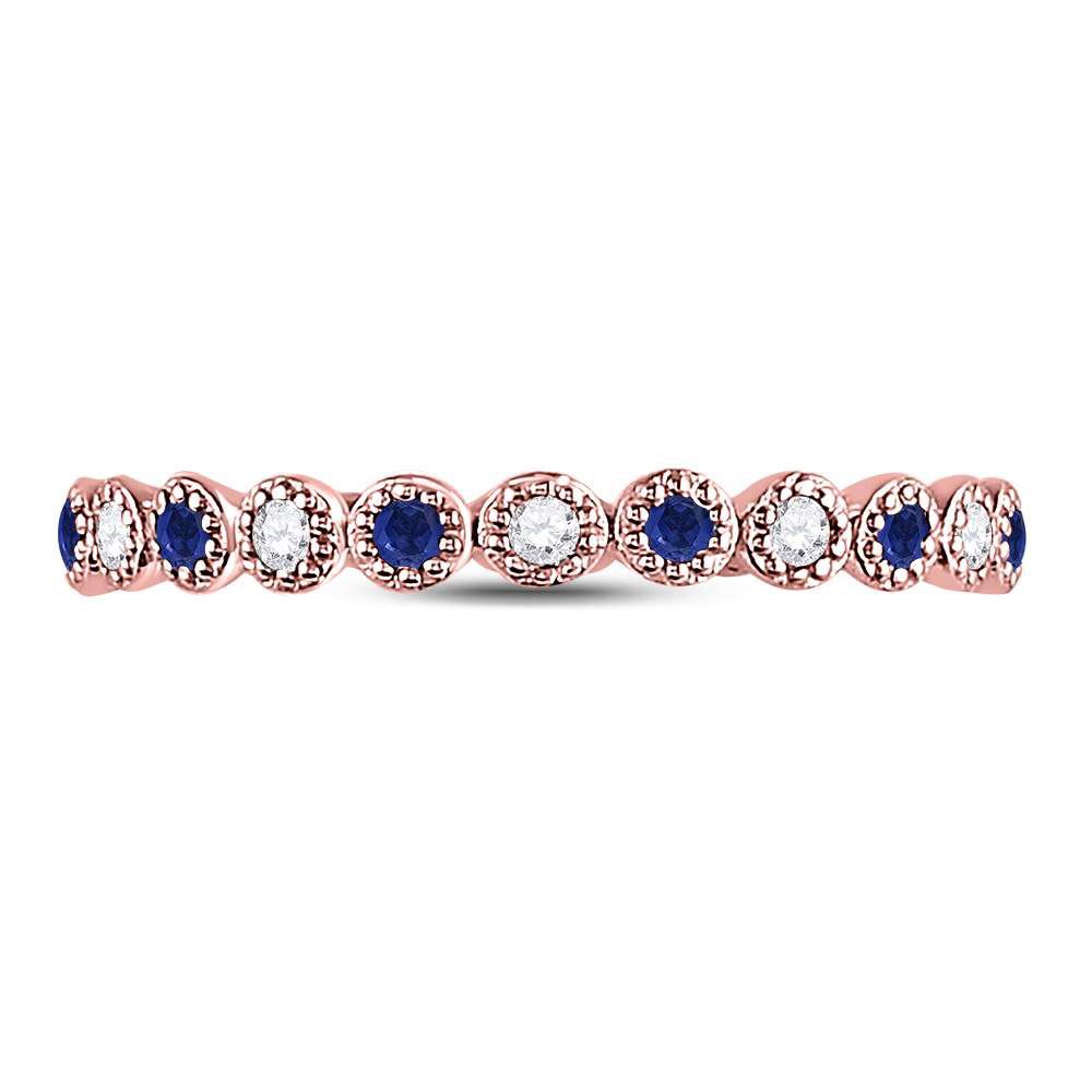 10kt Rose Gold Womens Round Blue Sapphire Diamond Beaded Dot Stackable Band Ring 1/6 Cttw