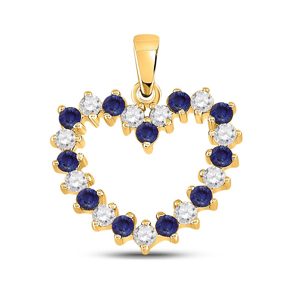 10kt Yellow Gold Womens Round Blue Sapphire Diamond Heart Pendant 1/2 Cttw