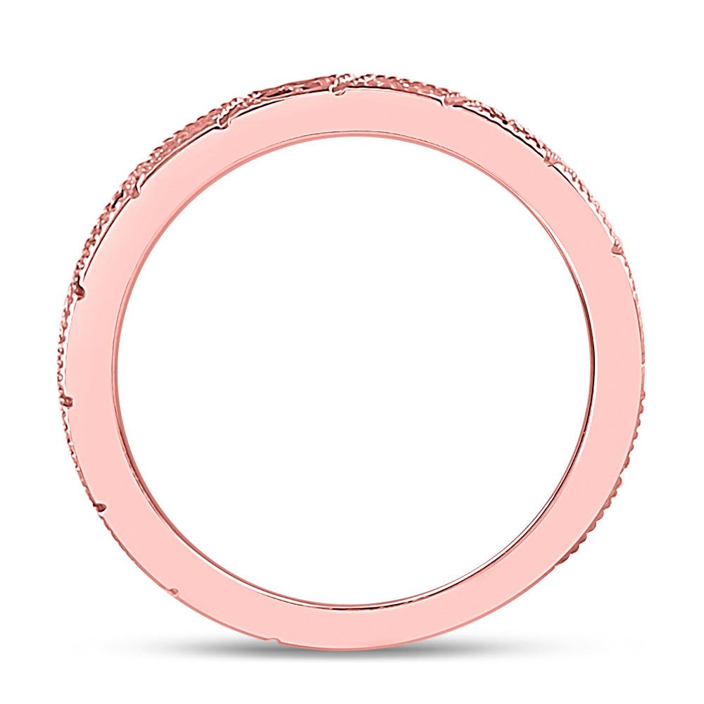 10kt Rose Gold Womens Round Blue Sapphire Diamond Milgrain Stackable Band Ring 1/4 Cttw