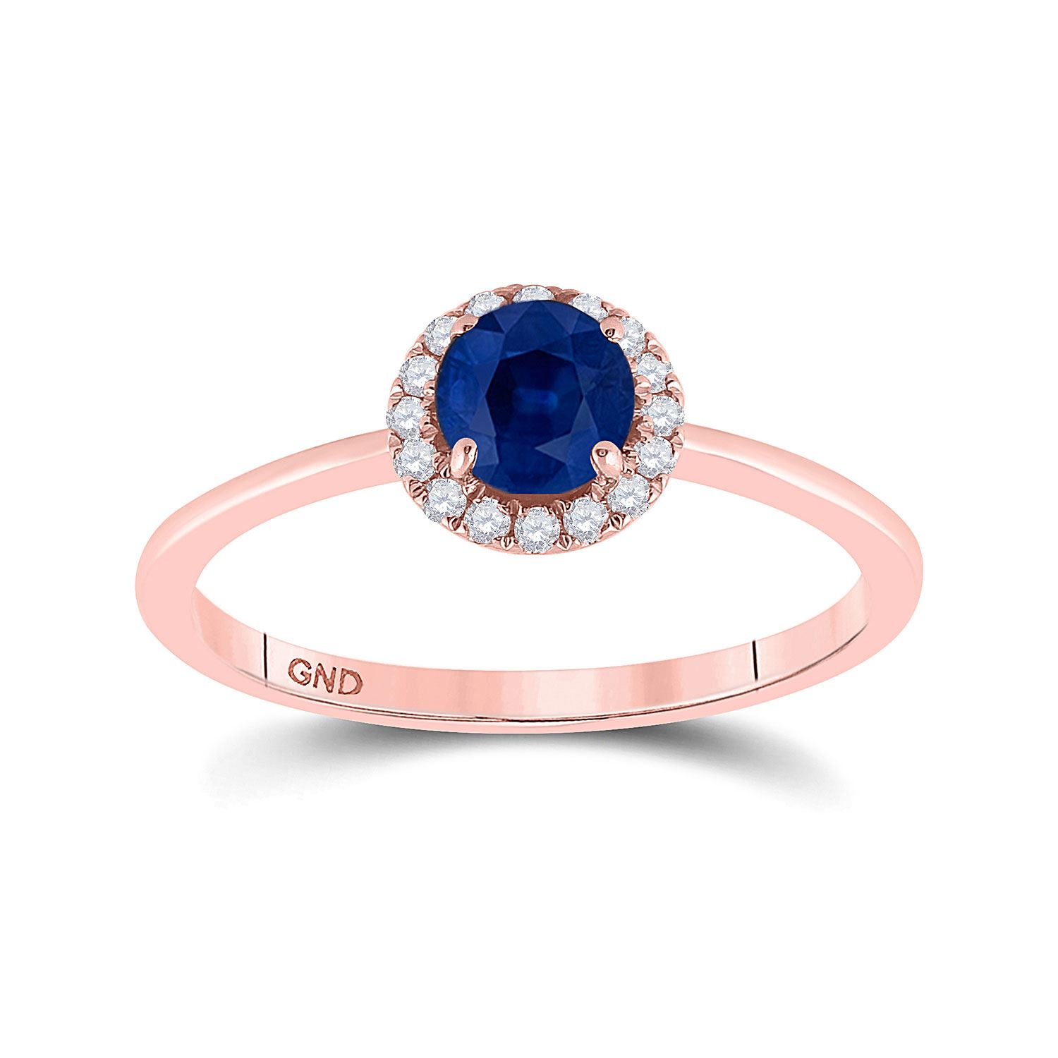 14kt Rose Gold Womens Round Blue Sapphire Diamond Solitaire Ring 7/8 Cttw