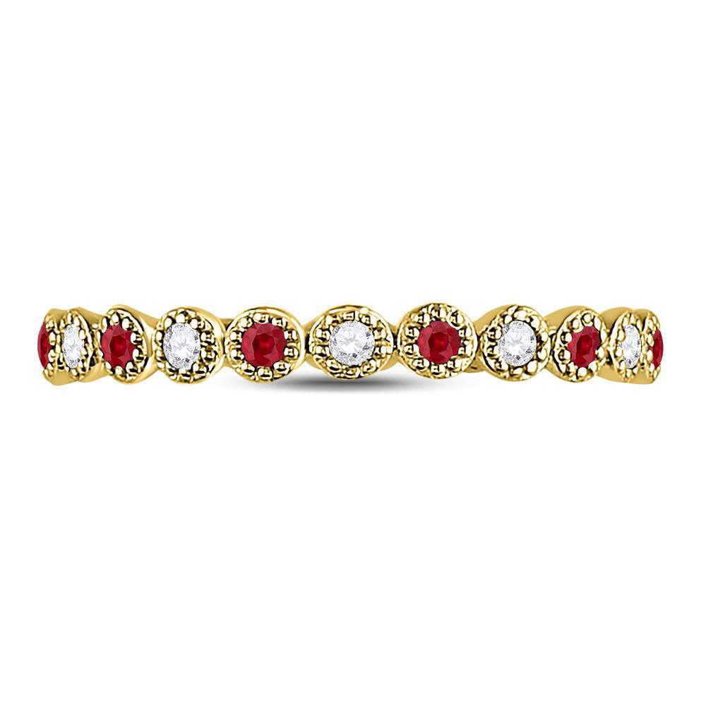 10kt Rose Gold Womens Round Blue Sapphire Diamond Stackable Band Ring .03 Cttw