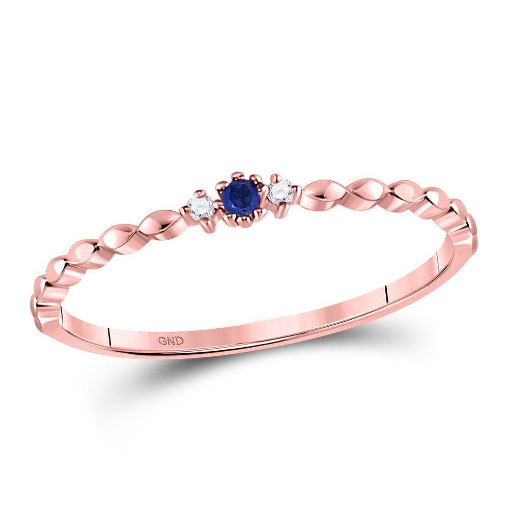 10kt Rose Gold Womens Round Blue Sapphire Diamond Stackable Band Ring .03 Cttw