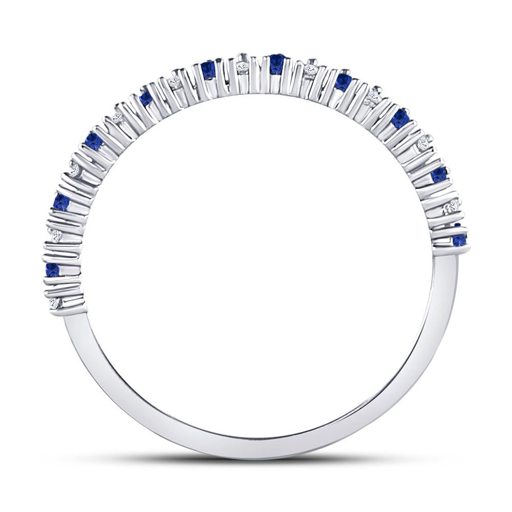 10kt White Gold Womens Round Blue Sapphire Diamond Stackable Band Ring 1/5 Cttw