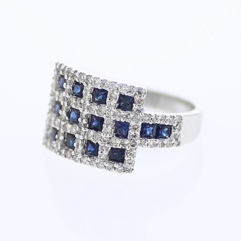 Blue Sapphire & Diamonds Pave-set Ring in 14K White Gold