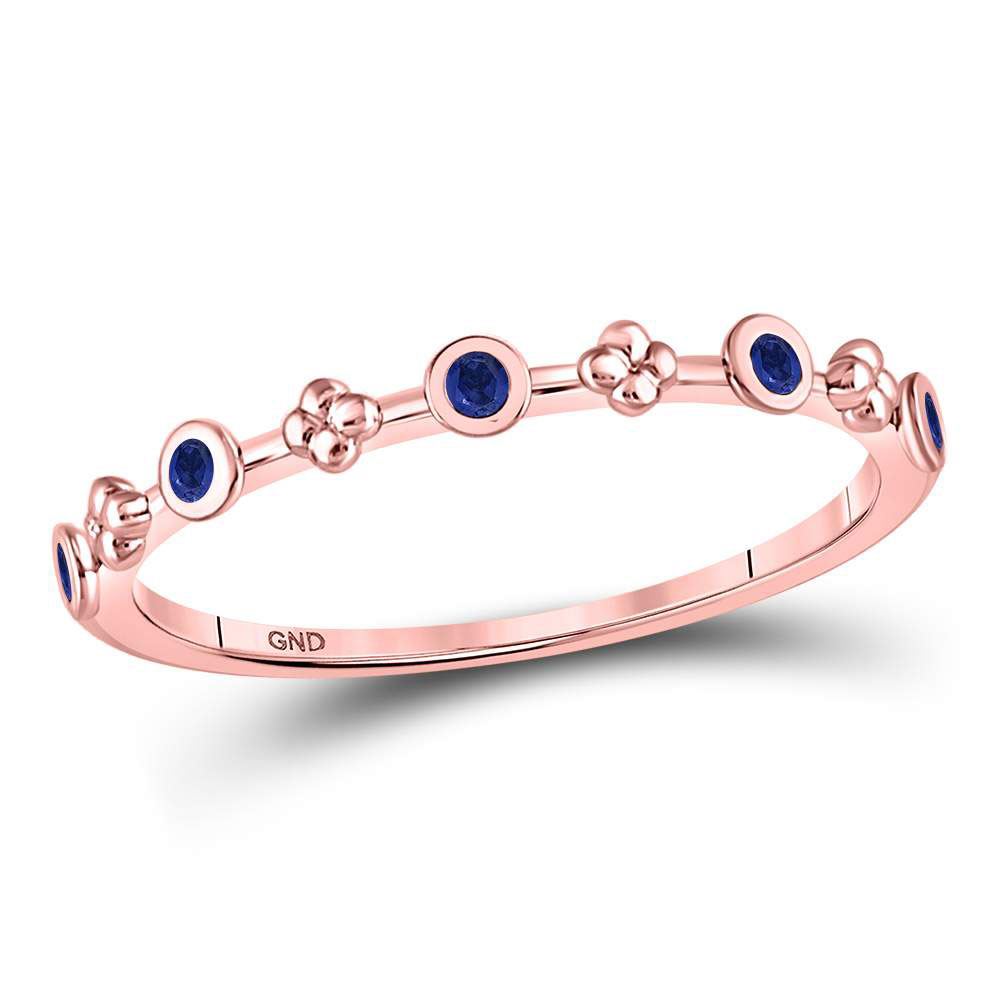 10kt Rose Gold Womens Round Blue Sapphire Dot Flower Stackable Band Ring 1/12 Cttw