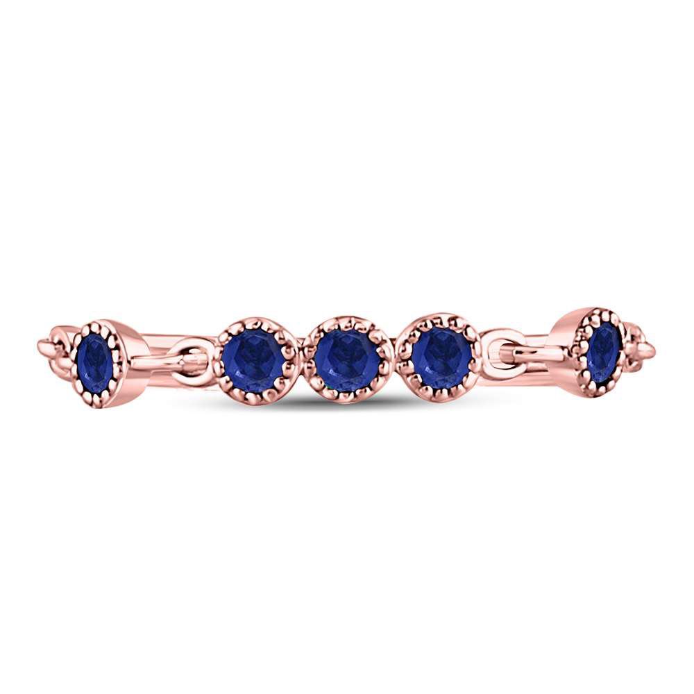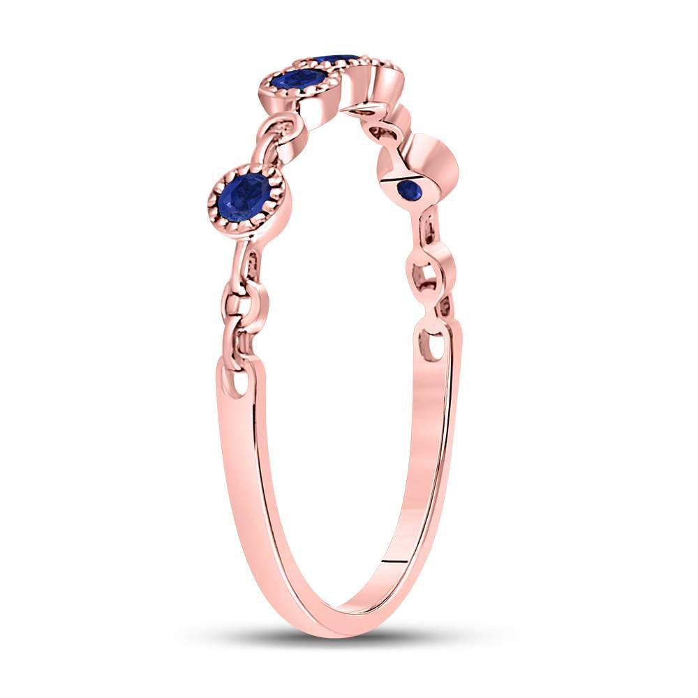 10kt Rose Gold Womens Round Blue Sapphire Dot Stackable Band Ring 1/5 Cttw