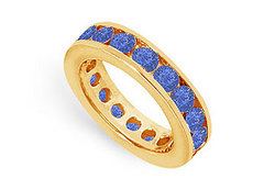 Celebrate your commitment & devotion with this endless circle of gems. Round intense blue sapphires are channel-set a 14K yellow gold. This eternity band has a total gem weight (TGW) of 3.00 ct. Being a September birthstone; it is an ideal gift for any September born.
