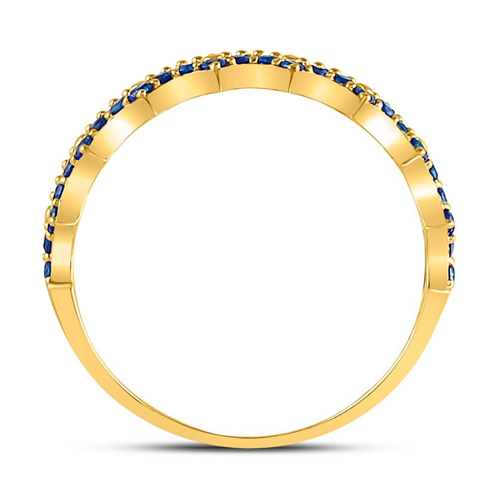 10kt Yellow Gold Womens Round Blue Sapphire Scalloped Stackable Band Ring 1/4 Cttw