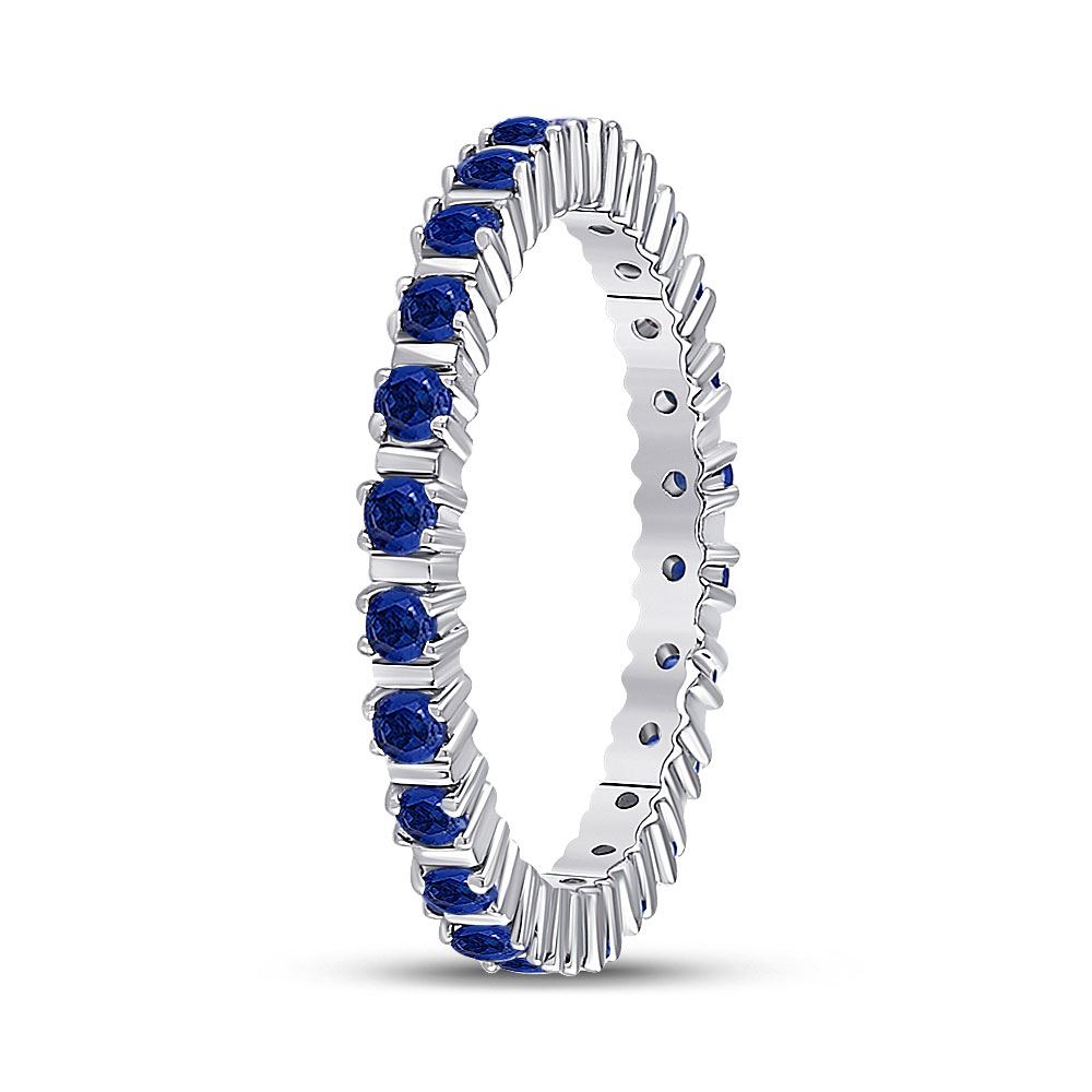 10kt White Gold Womens Round Blue Sapphire Stackable Band Ring 1 Cttw