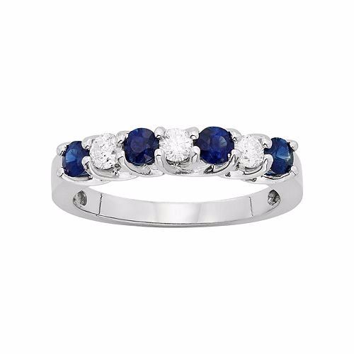 Adorned with alternating genuine blue sapphires and diamonds, this ring exudes exquisite beauty. Add a breathtaking touch to your look with this 14k white gold ring.