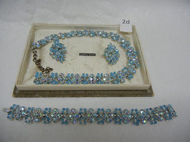 Blue & Silver Fashion Clip On Earring, Bracelet, and Necklace Set, by Kramer