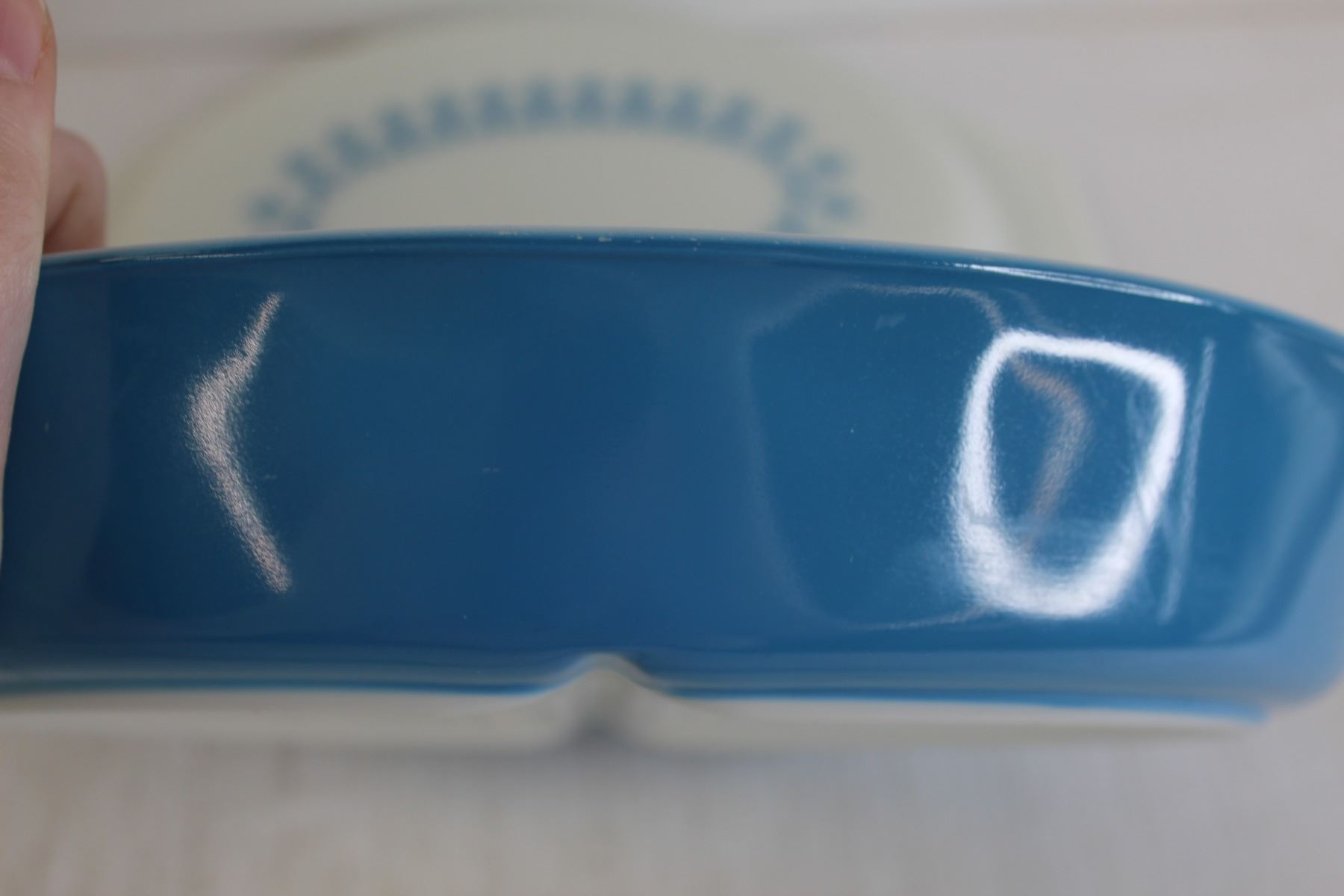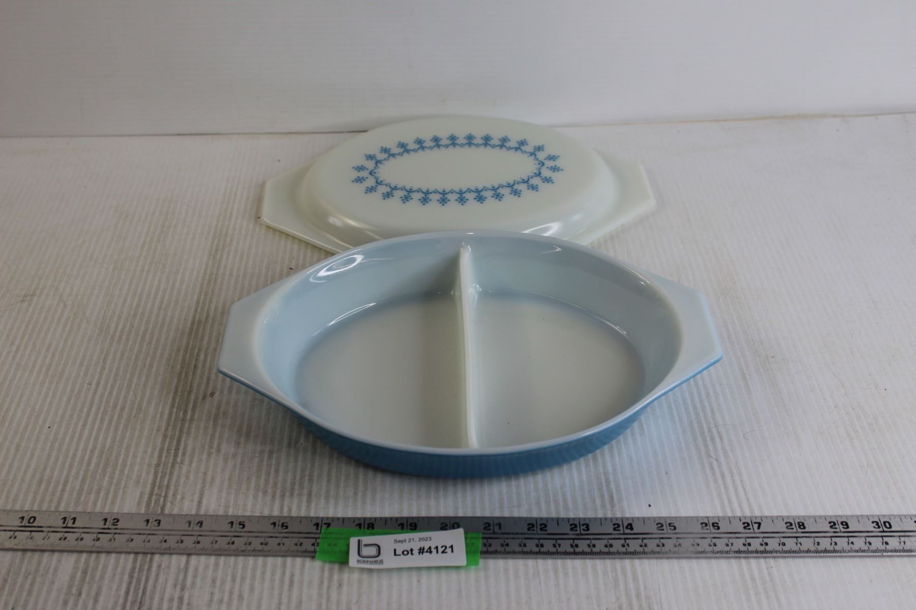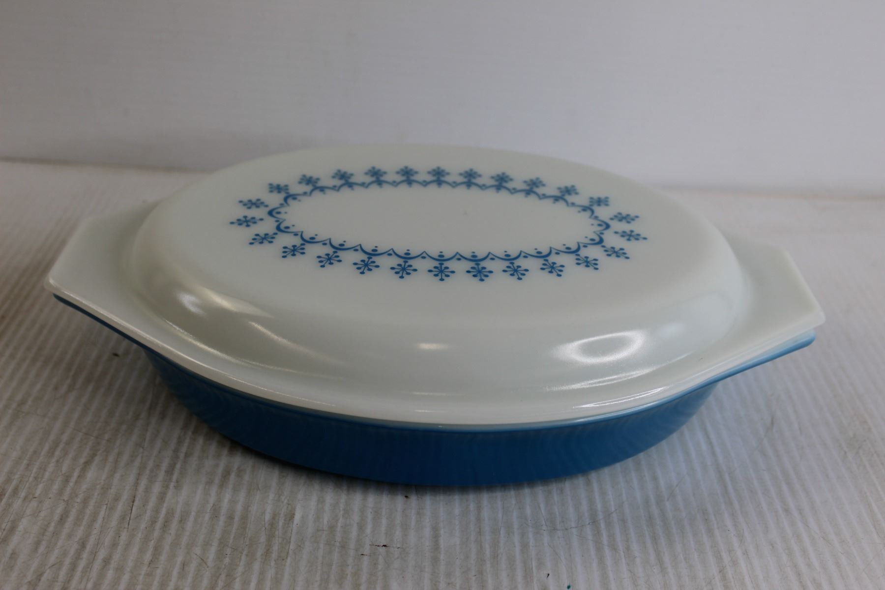 Blue Snowflake Pyrex Oval Divided Dish with Lid
