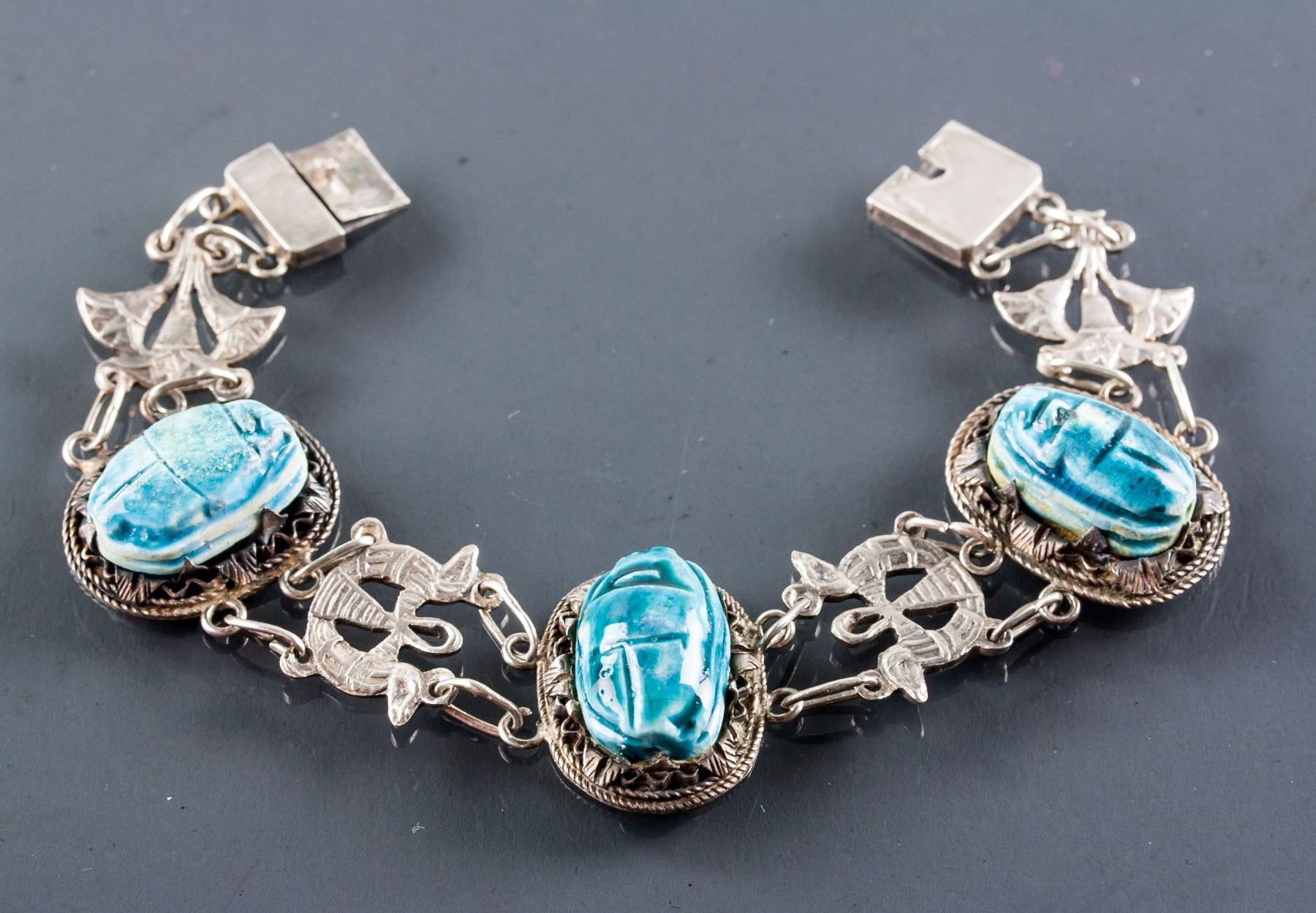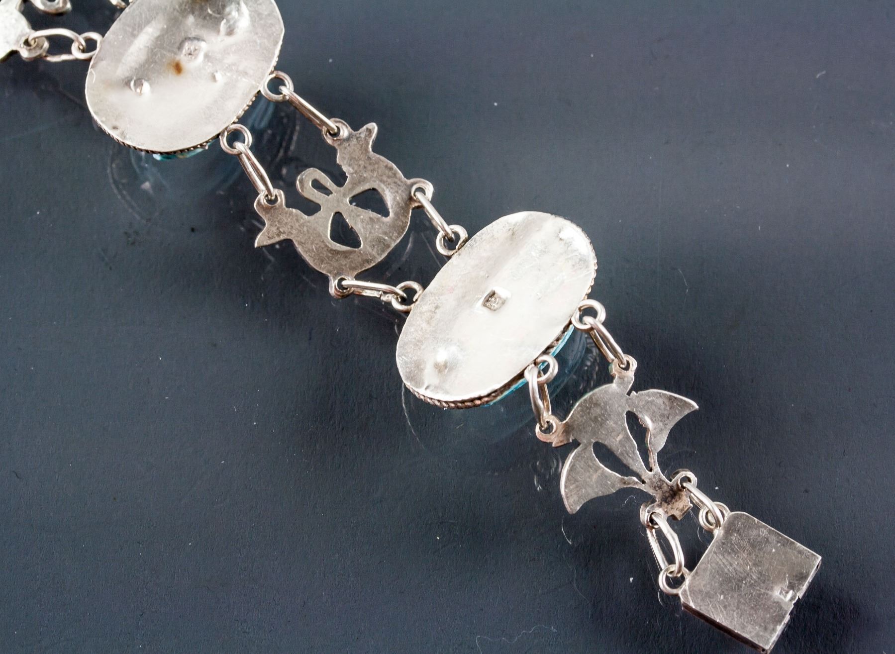 Silver bracelet set with blue stones. 18 cm, 21 grams