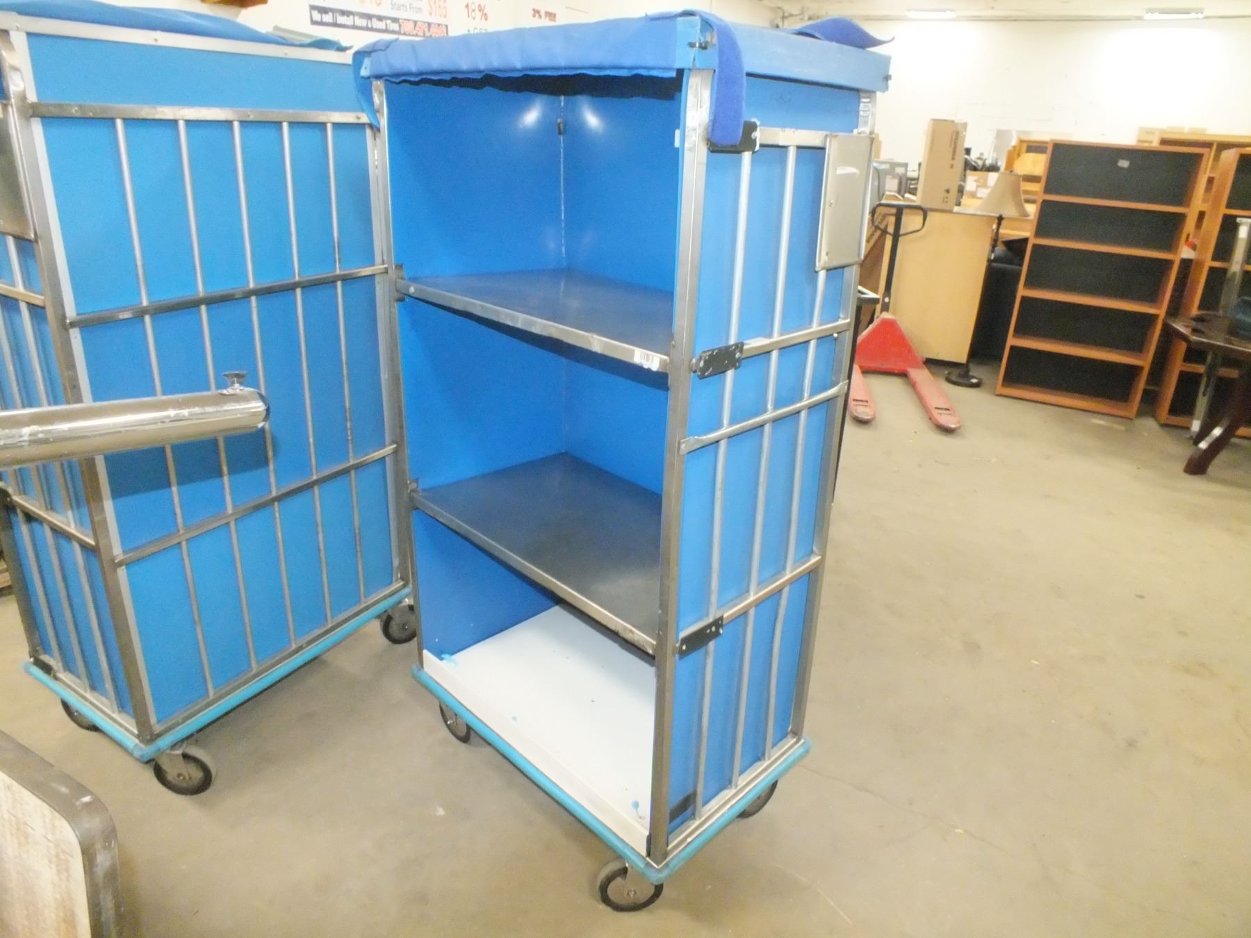 Blue Storage Cart On Wheels, 36"l 21 1/2"d 70"H...used