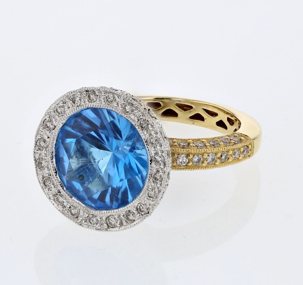 Blue Topaz and Pave-set Diamond Ring in 18K Two-tone Gold | 270290 6.5 Grams, featuring 4.28 White Diamond Round ct 1 1.08 ct 94 ct 18 ct