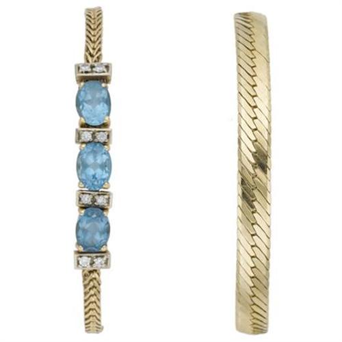 Blue Topaz, Diamond, Gold Bracelet Lot