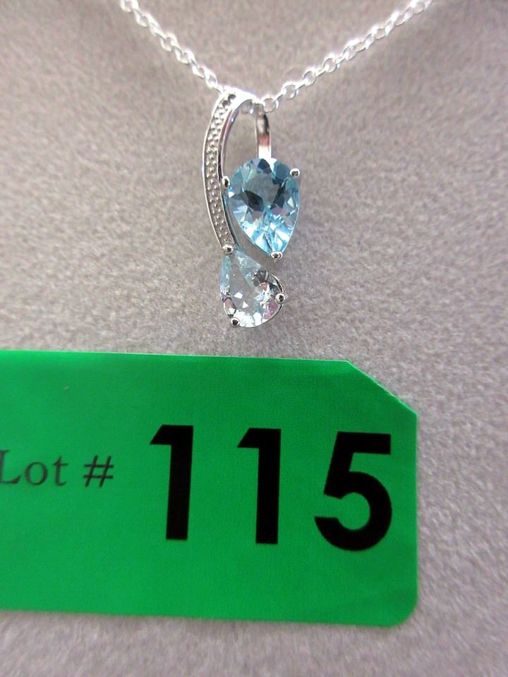 2 Pear cut blue topaz. Baby sky blue colour. 2 Diamonds. Sterling silver. Retail value $325