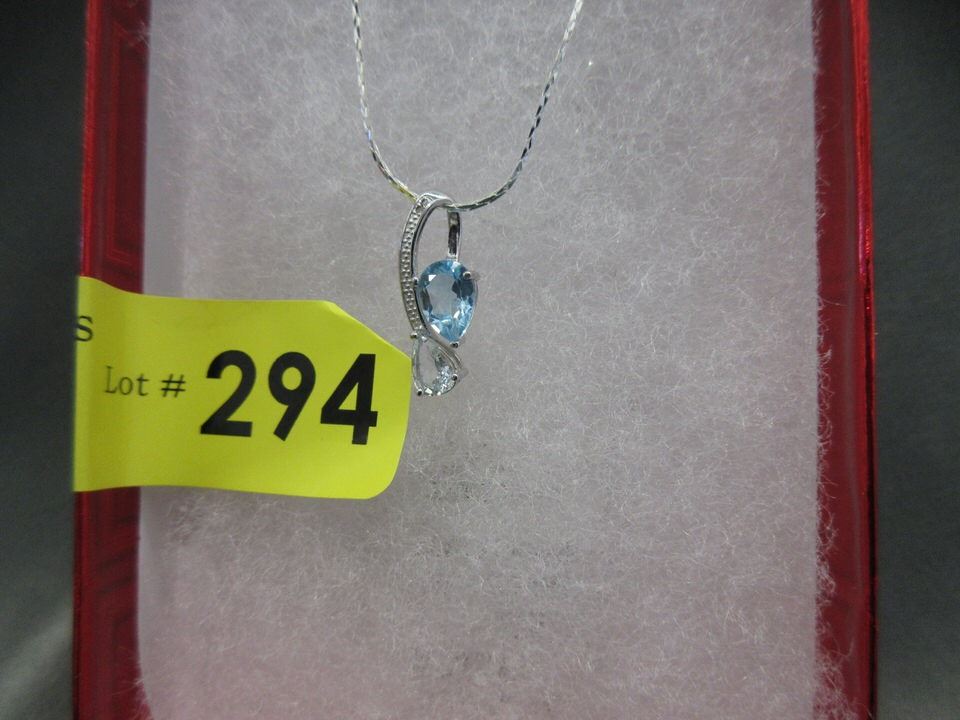 2 Blue Topaz. Pear Cut stones. 2 Diamonds. Sterling Silver. Retail Value $260