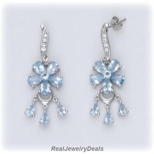 Solid Sterling Silver Genuine Blue Topaz Drop Dangle Earrings
