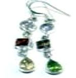 Silver and Blue Topaz, Smokey Quartz & Peridot Earrings. Allow 6 to 8 weeks for delivery.