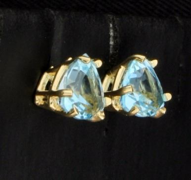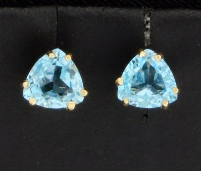 In 10K yellow gold, the trillion cut gemstones are 6x6mm, the earrings come with friction backs. .9g