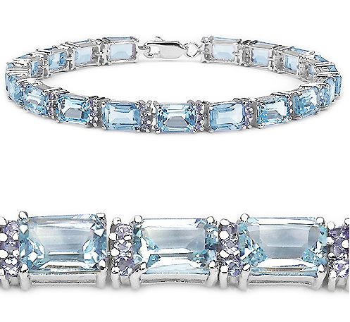 Blue Topaz, Tanzanite & Strl. Slvr. Bracelet .925 Sterling Silver bracelet has 19 round tanzanite stones and 2 octagon Blue Topaz stones. Tanzanite and Blue Topaz total carat weight: 23.9 Weight: 20.68 grams.