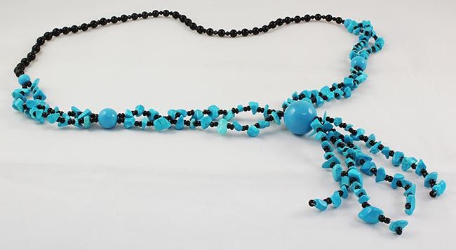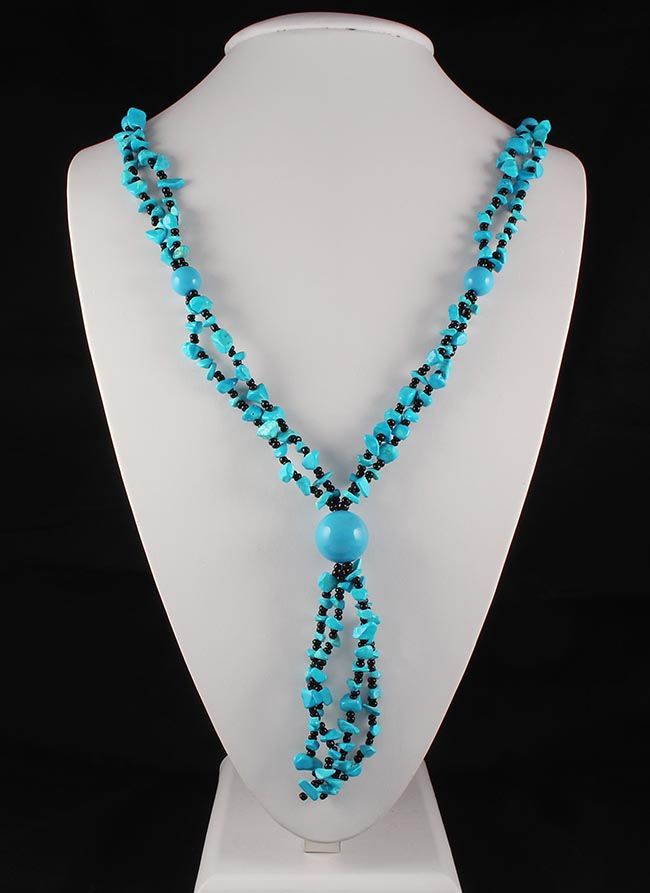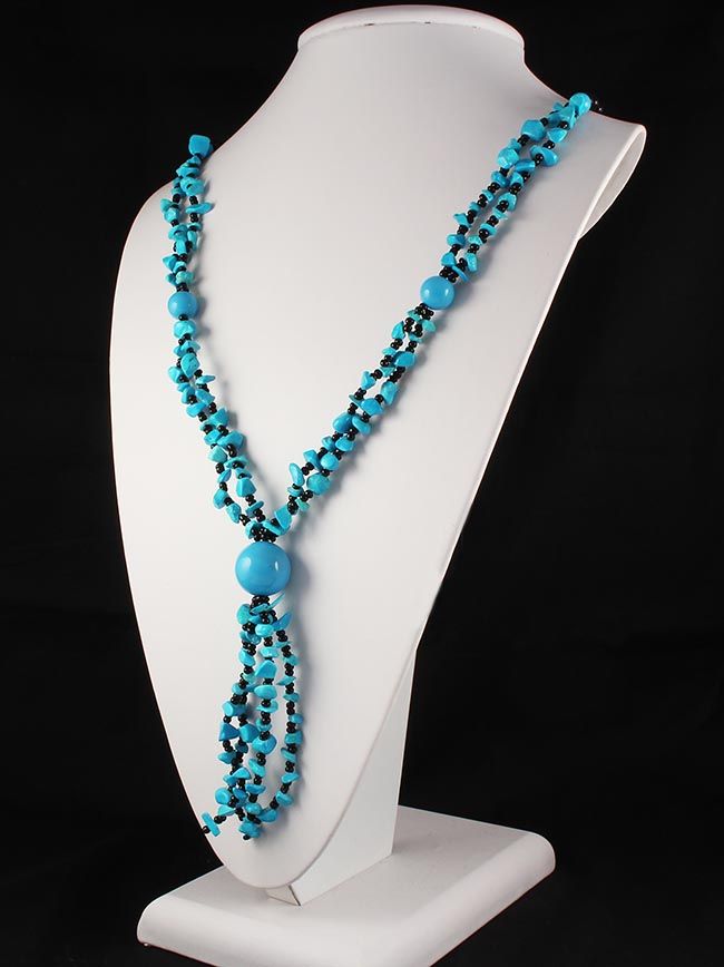 Blue Turquoise & Black Beads Necklace **|**|** 301.00CARAT Statement Turquoise Handknotted Turquoise and Beads Necklace ; MSRP: $0