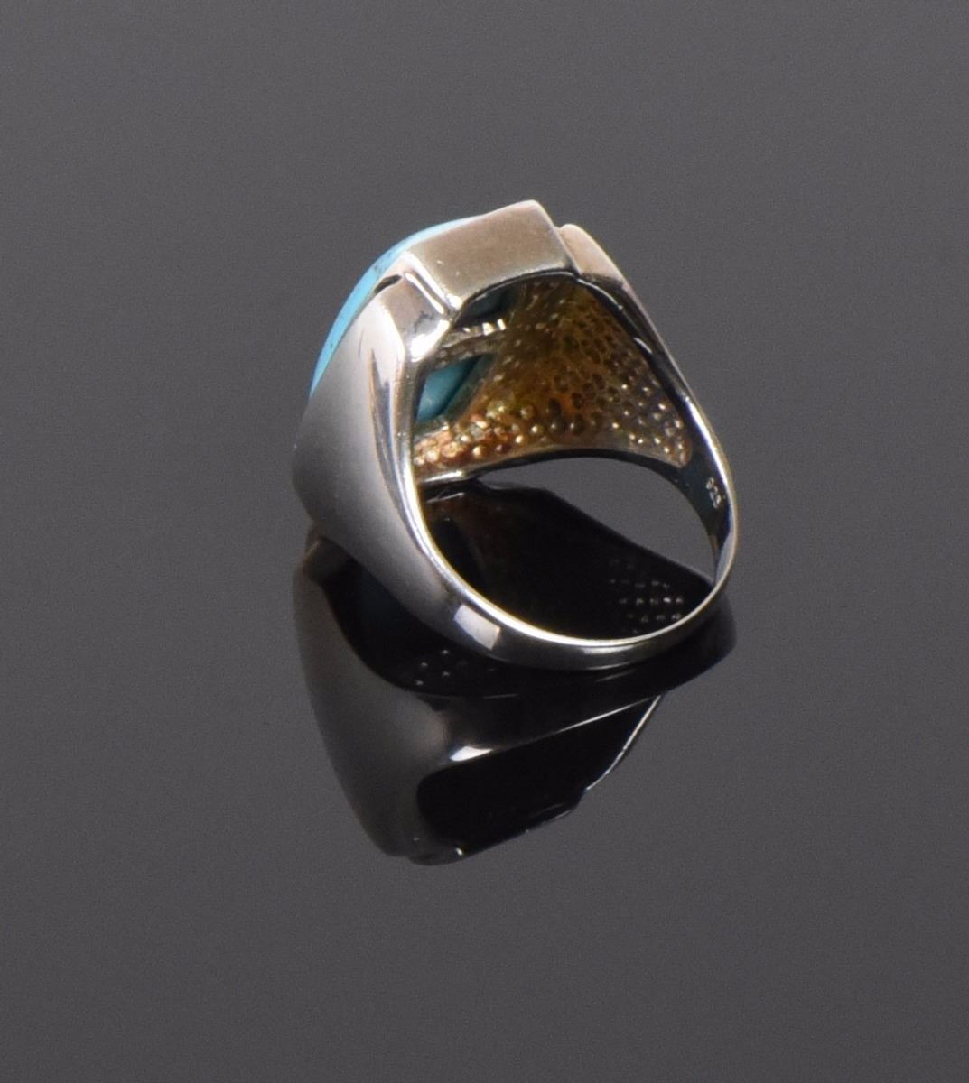 Blue Turquoise Pyrite Matrix Sterling Silver Ring. Sx China 925 Sterling Silver Ring Size: 10 Silver Tested. Estimated less than 50 yrs old. 925 Sterling Silver consisting of 92.5% silver and 7.5% copper. Tested Positive using Nitric Acid Chemical Scratch Test, Cloth Rub Test, Smell Test, and Magnet Test. Markings of 925 or Sterling stamp. The reason silver needs to be combined with other metals is that it is very difficult to make great designs with just pure silver, which is very soft and malleable. A bit of hardness has to be introduced by adding other metals such as copper. That is why jewelers are capable of making the most intricate an complex designs with 925 Sterling Silver. Silver is one of the most valuable elements next to gold. Mexico is the leading producer of sliver, followed by the United States, Canada, Australia, Spain, Peru, and Russia. Many countries do not require their precious metal items to be stamped and therefore we test to ensure we accurately represent the product. Size: See Ruler Photo. (Photos Represent The Condition Of The Lot.)