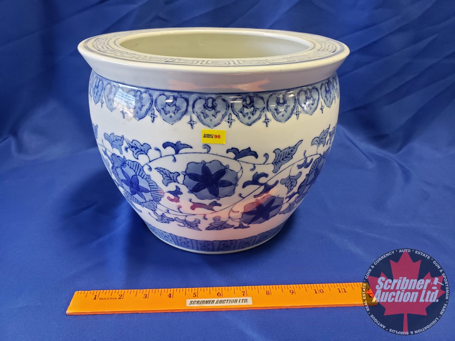 Blue/White Glazed Planter Pot (9"H x 12"Dia)