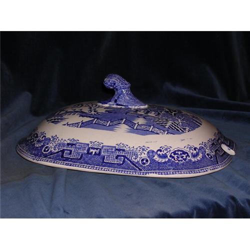 English blue and white oval shaped lid.