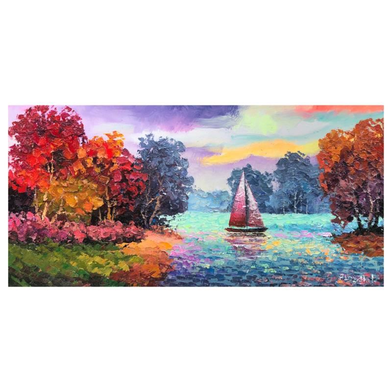 Blue Wind by Antanenka Original. Please see photos and description for all available information. "Blue Wind" is an original oil painting on stretched canvas by Alexander Antanenka. Hand signed by the artist, the piece comes with a letter of authenticity. Measures approximately 12" x 24" (image).