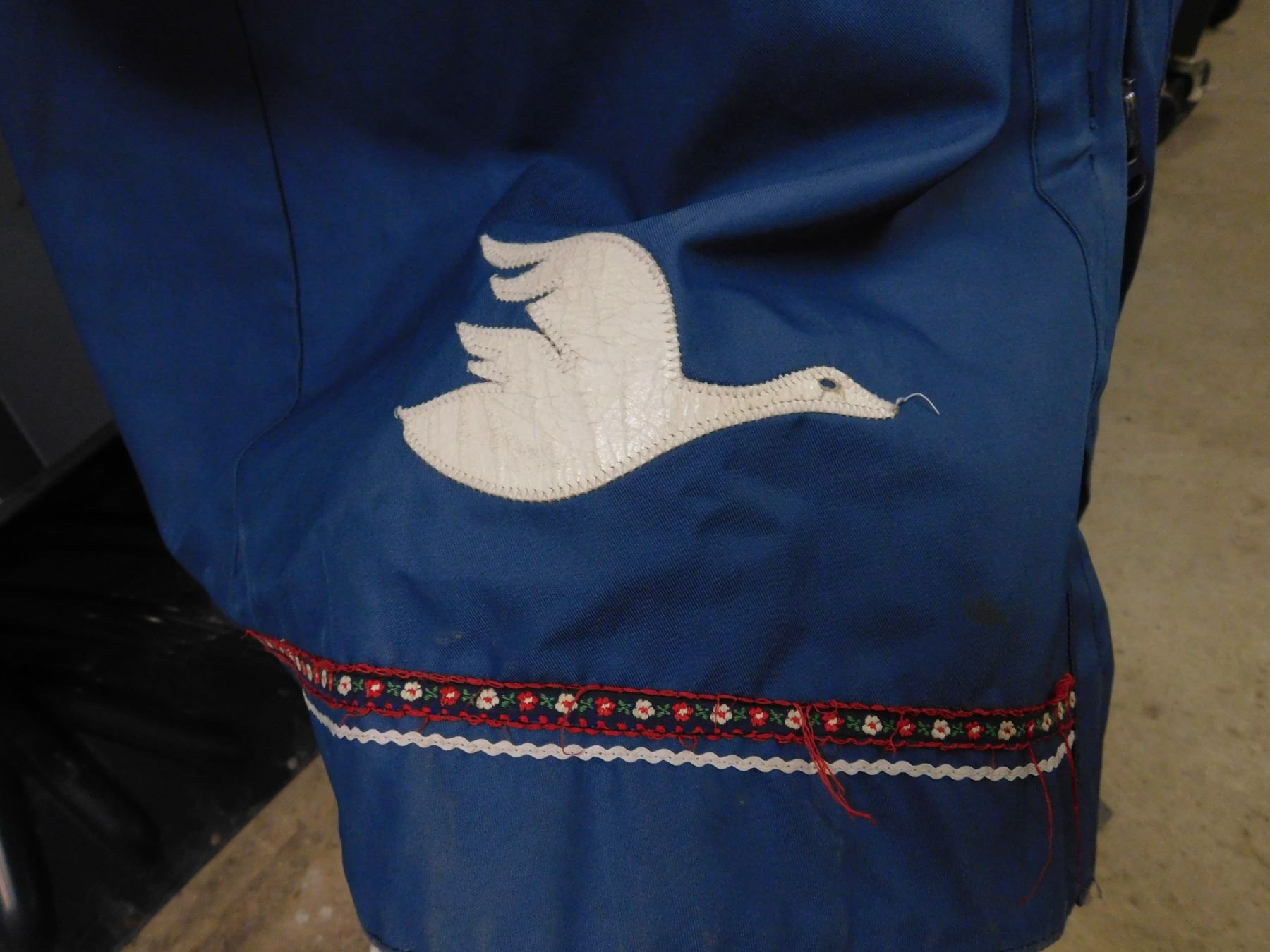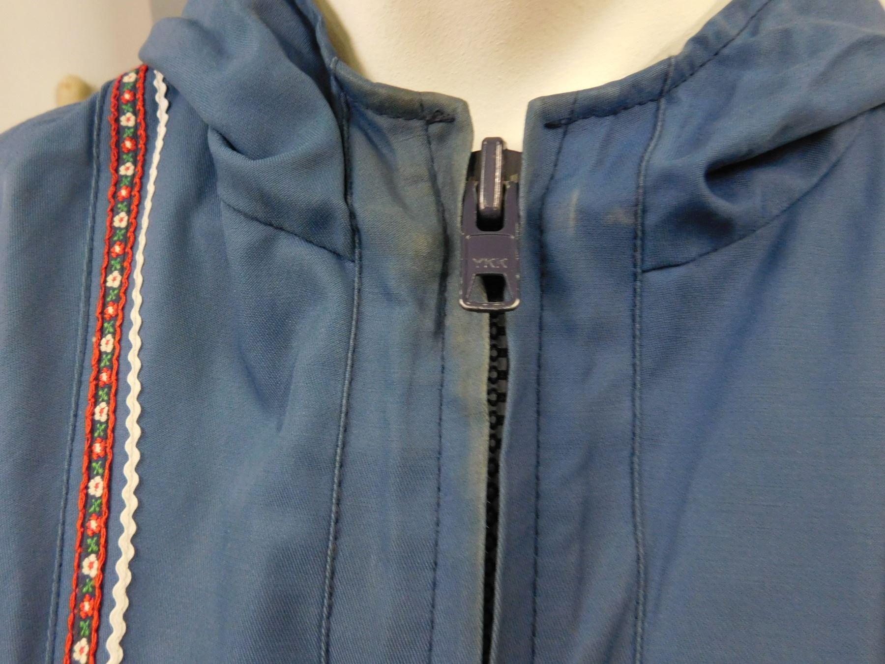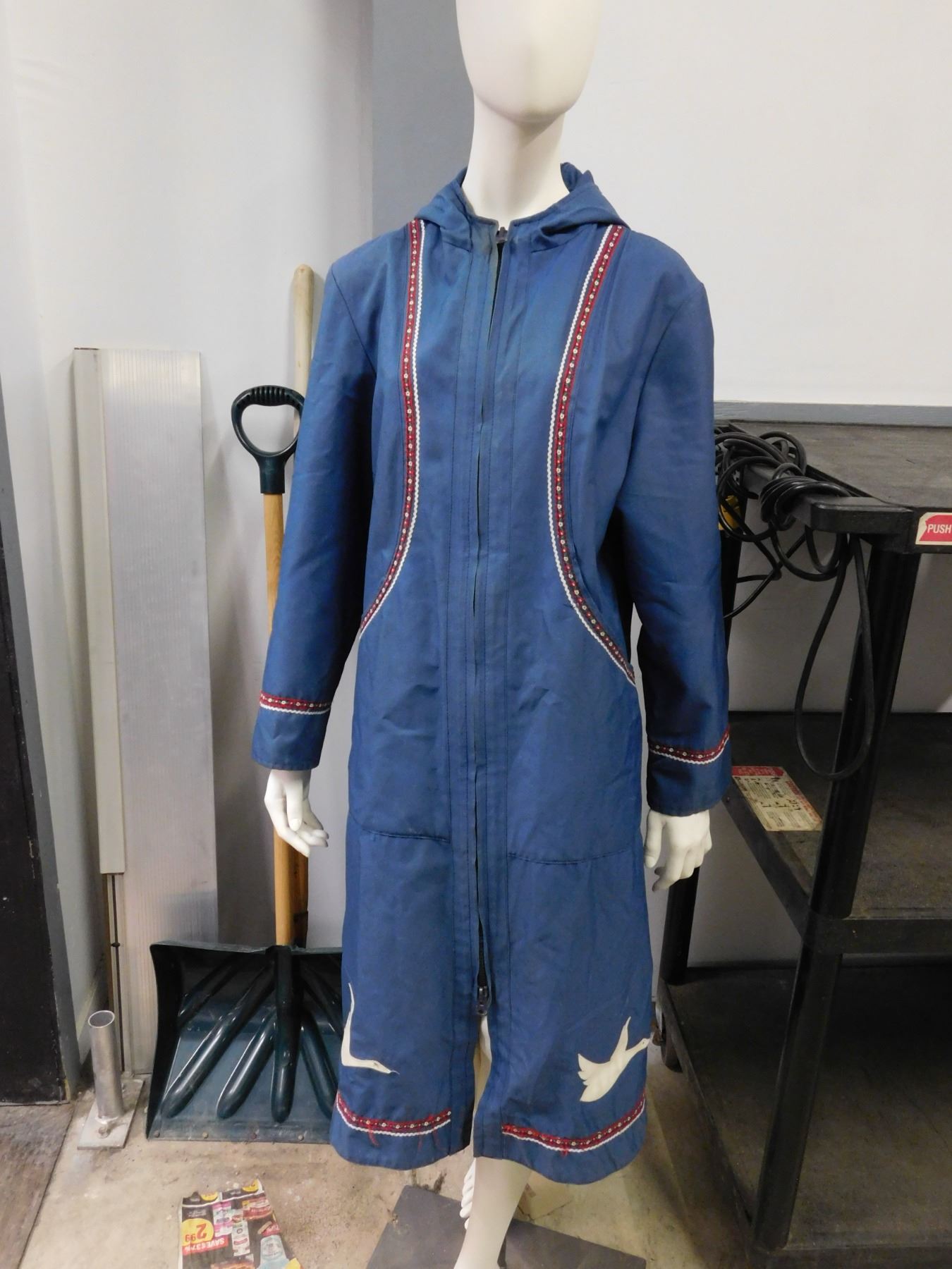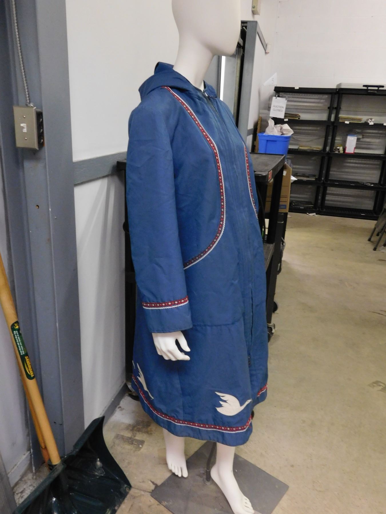 Blue Windbreaker Size 16 Jacket Trench Coat Zip-Up Indigenous Bird Pattern