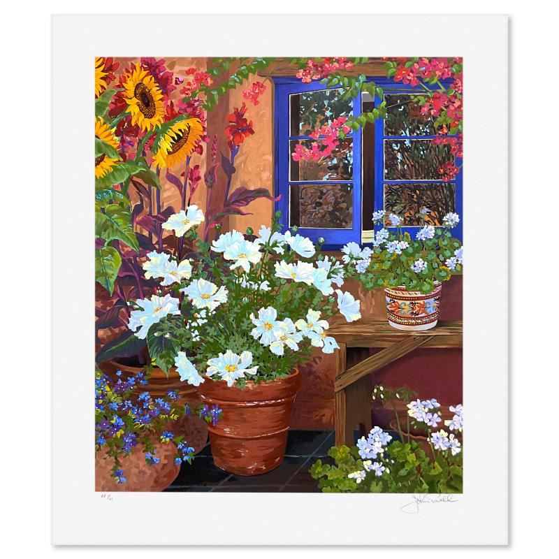 "Blue Window" is a limited edition printer's proof serigraph on paper by John Powell, numbered 1/21 and hand signed by the artist. Includes Letter of Authenticity. Measures approx. 30" x 25" (border), 24" x 20" (image).