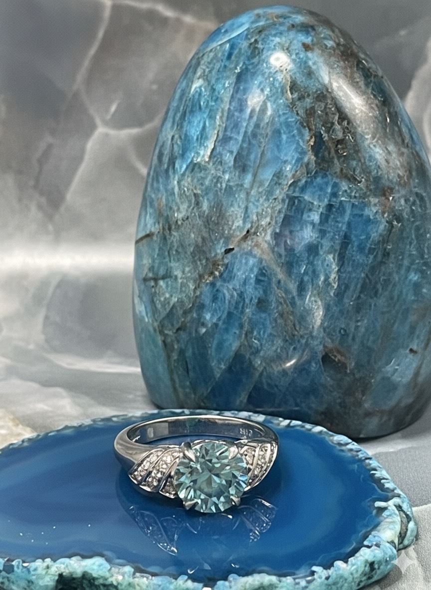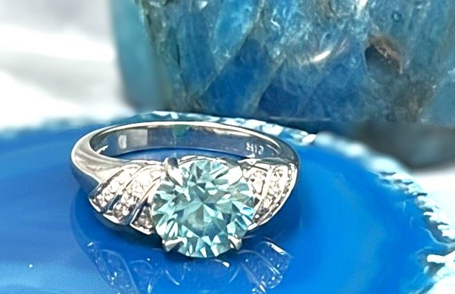 #Auction13 #BlueZircon #DiamondAccent #LuxuryRing #FineJewelry #18KWhiteGold #BidFairTreasures #CollectorGem #BrilliantDesign #DistinctiveElegance