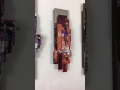 Artist: Elizabeth Dunlop. Title: Blue and Pink Totem on Brass. Medium: Dichroic Glass on Brass. Size: 36" x 5" x 3". Framed size (if applicable): N/A Artist's description: One of the rich metals I use to enhance my sculptures is brass, as in this sculpture. This brass with patina products has the rich feel of copper, which I use a lot of as well. The blue and pink colors come together in a dance of light. This piece, as all my work I hope, compels you to look deeply into the piece while observing the changing hues as you move across it – engaging with glass as an organic and almost living medium. Shipping from ZIP CODE 85210.