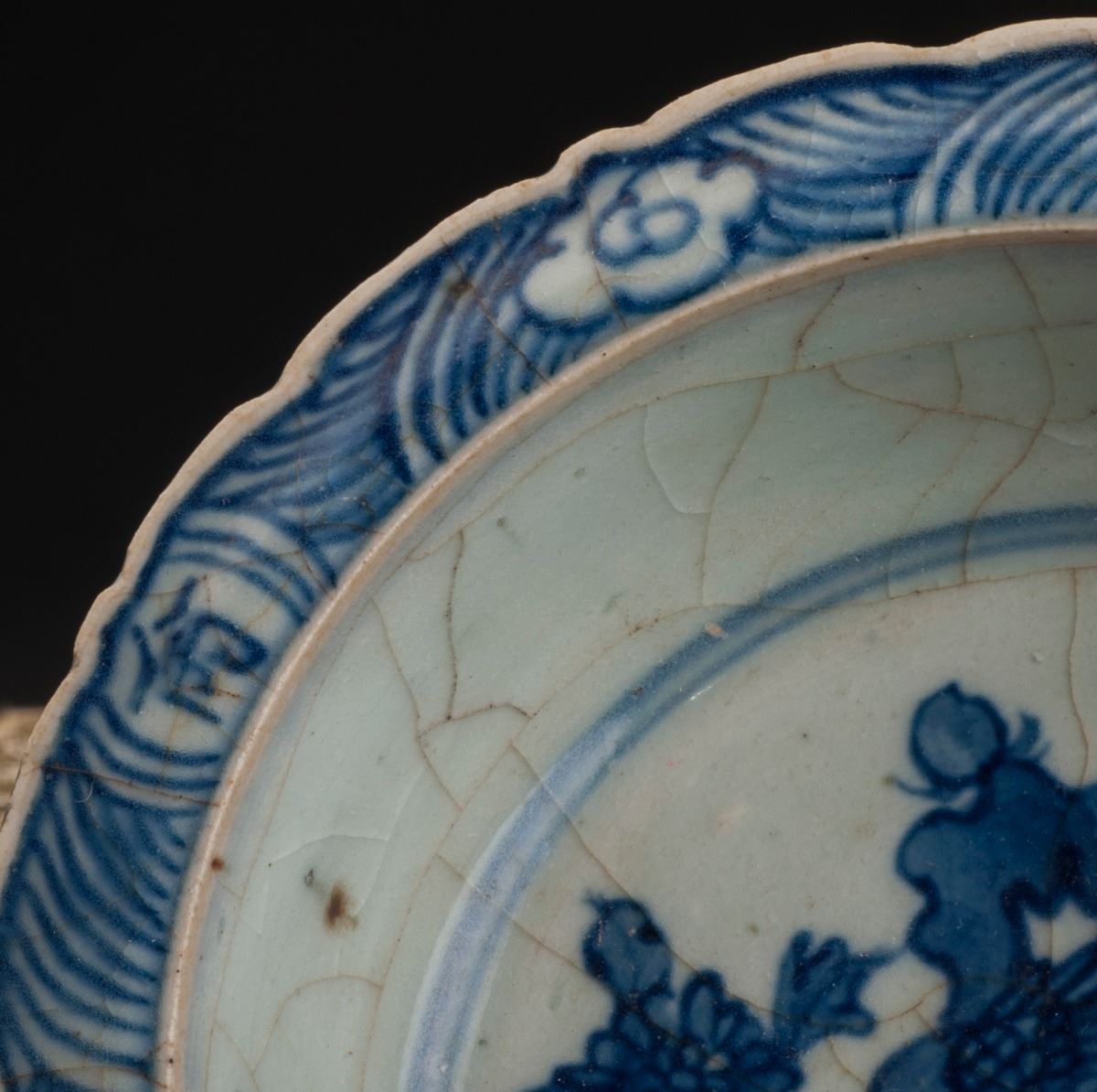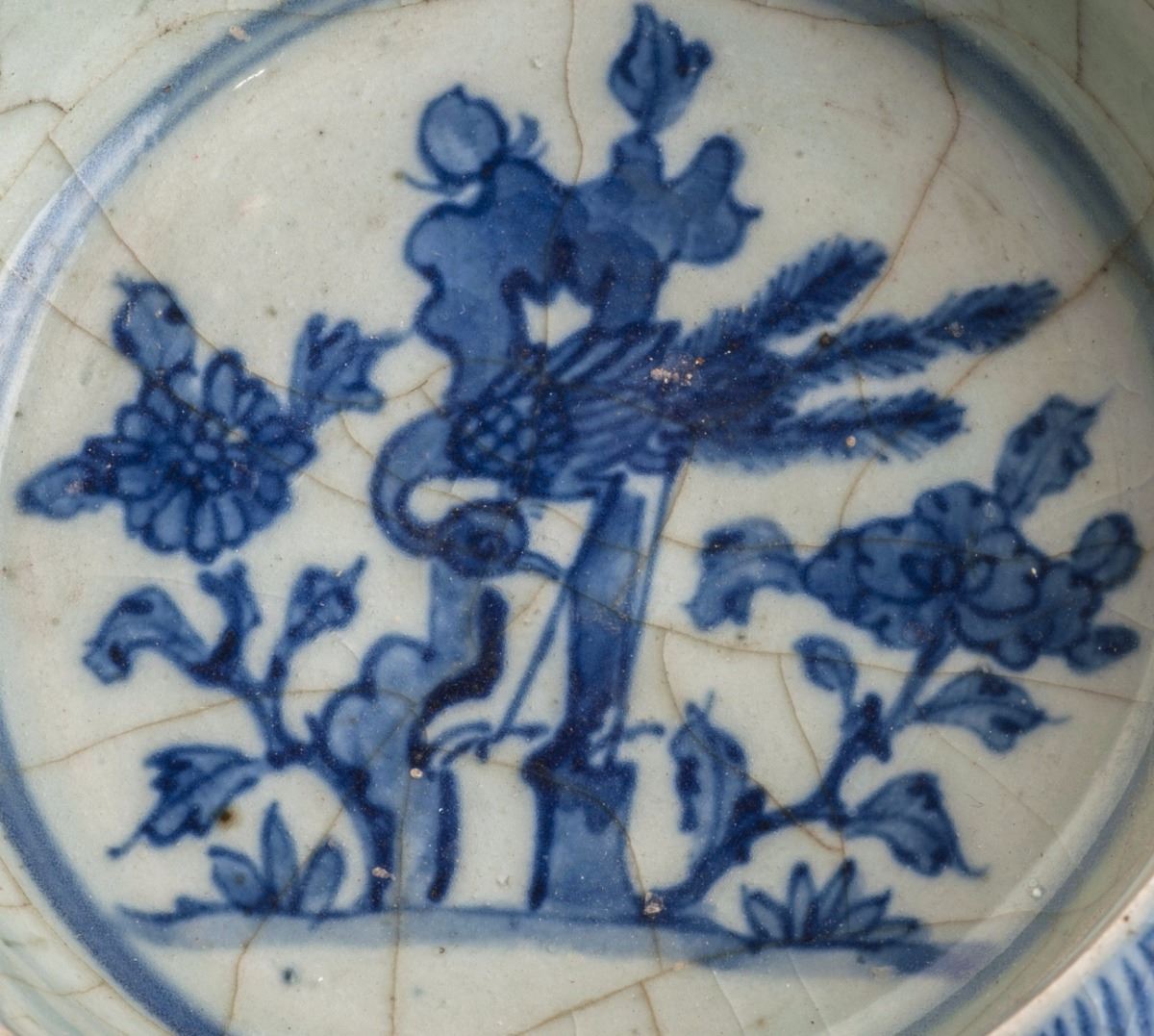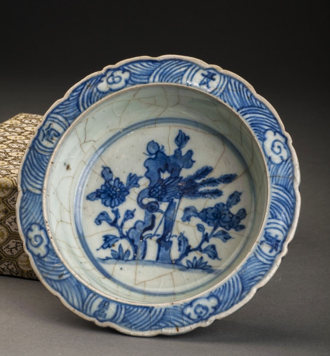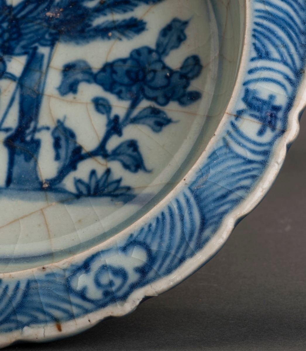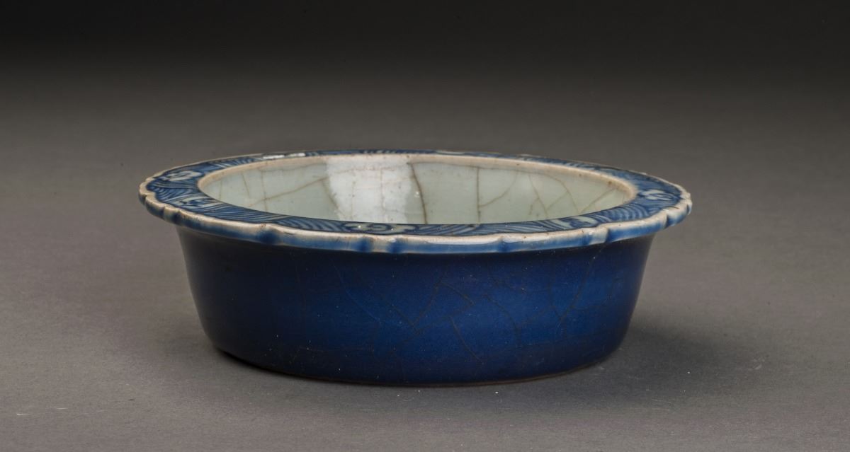 A Fine Blue And White Brush Washer, With Delicate Design Of The Slightly Flared Flower-edge At The Rim. Painted With The Pattern Of One Vivid Bird And Blooming Plants. Attributed To Qing Dynasty.