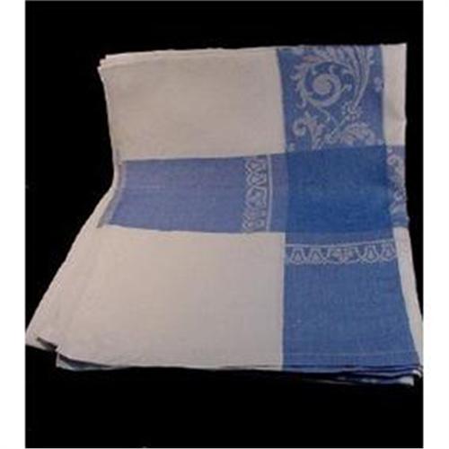 A vintage supper cloth - measures 200 cm by 160 cm (about 78.5 inches by 63 inches). Good quality cotton damask, with wide blue border. Attractive pattern. Very good condition.