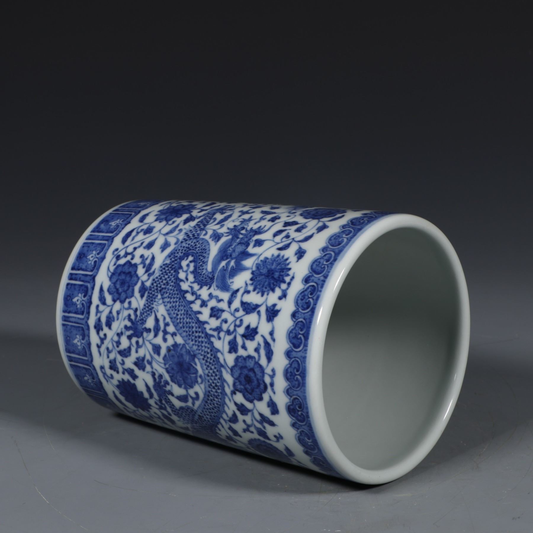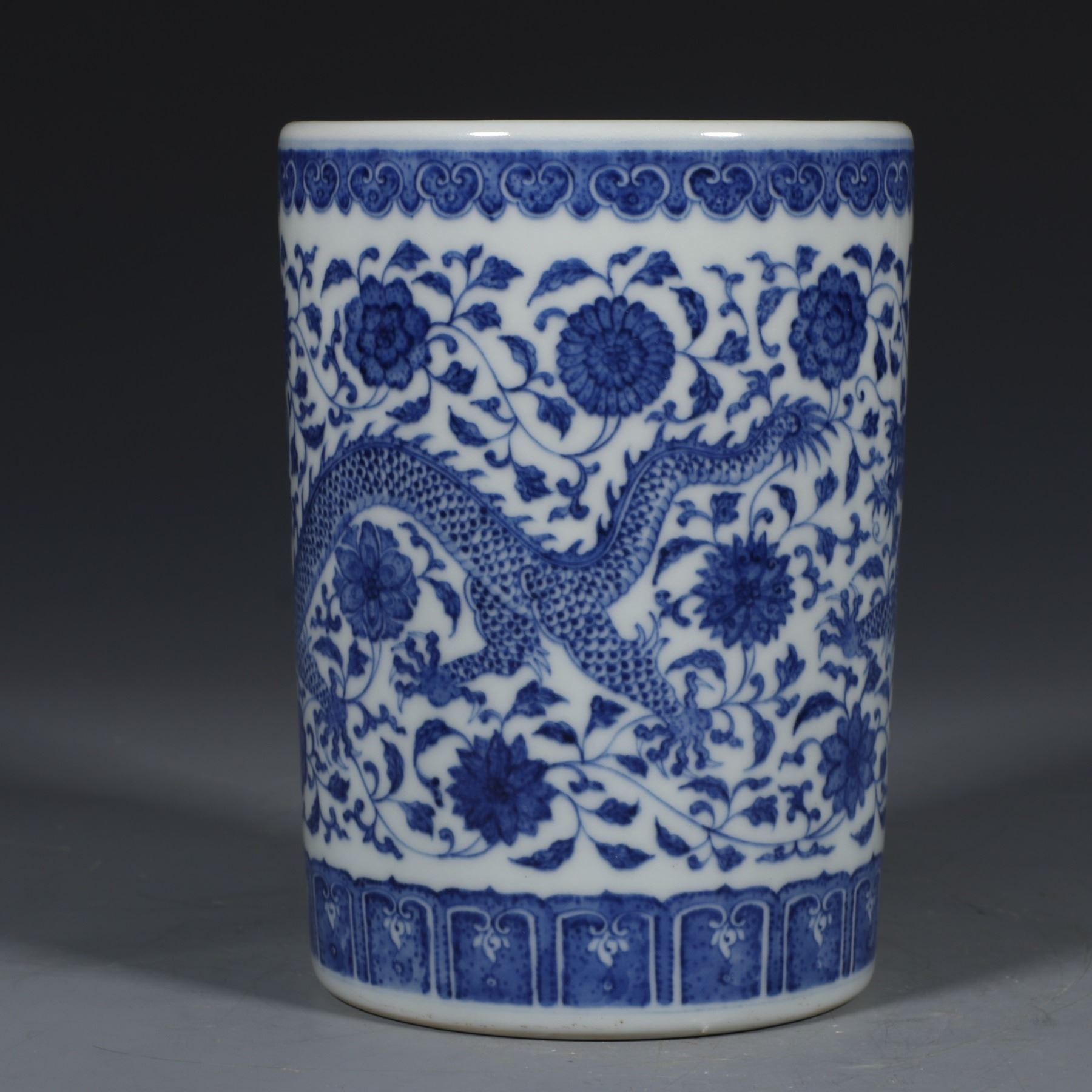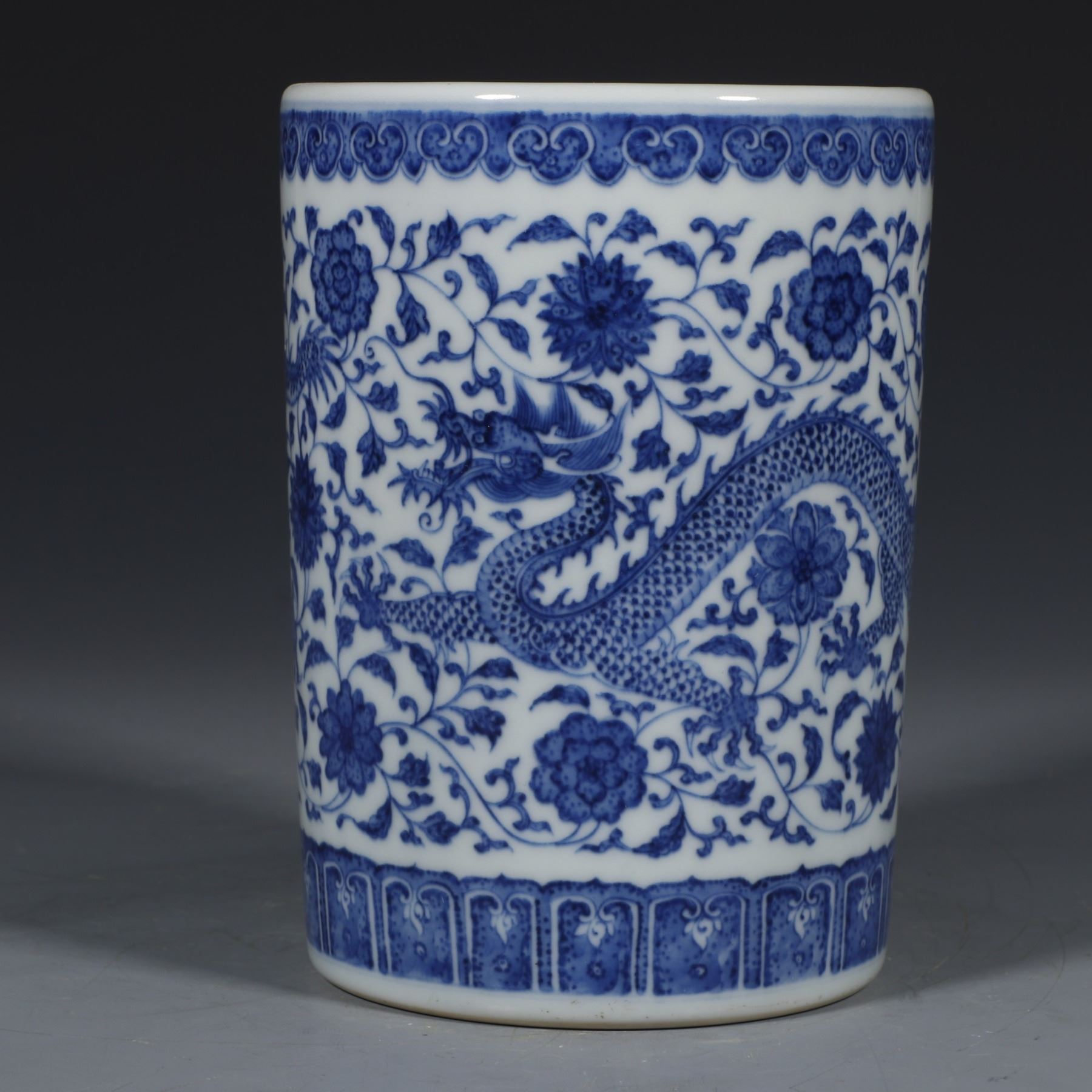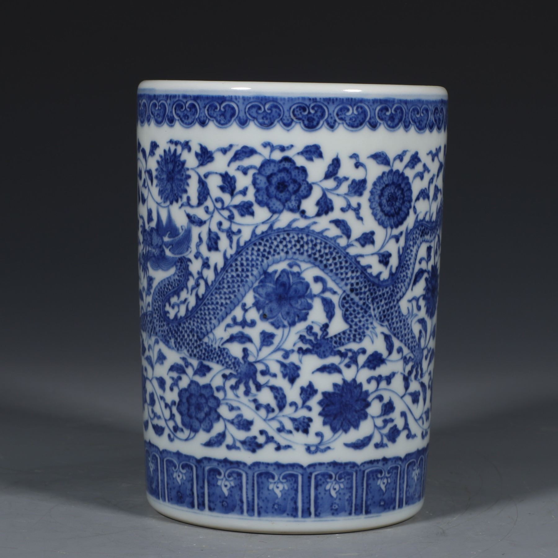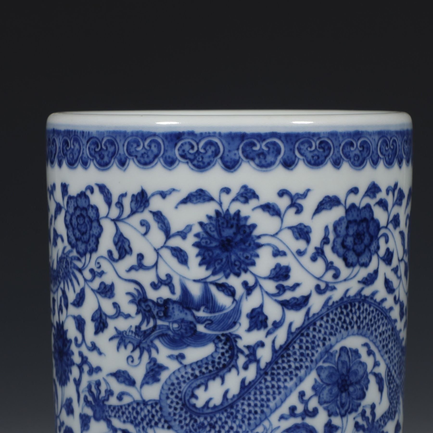 Blue and White Dragon Pattern Brush Pot, Daqing-Yongzheng-Nianzhi Mark