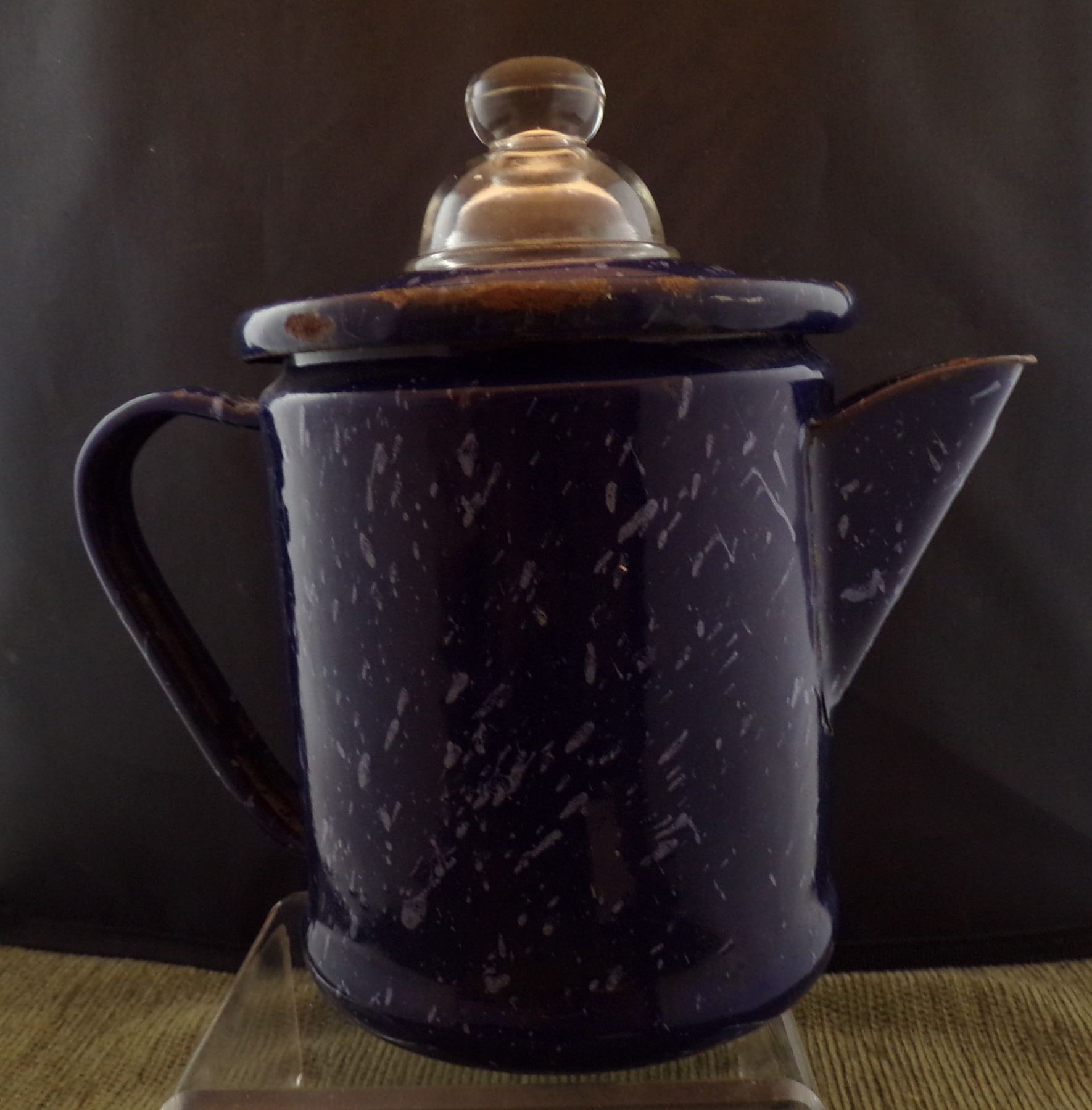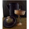 Blue and White Enamelware Percolator Coffee Pot, complete, measures 8''H x 9'' handle and spout