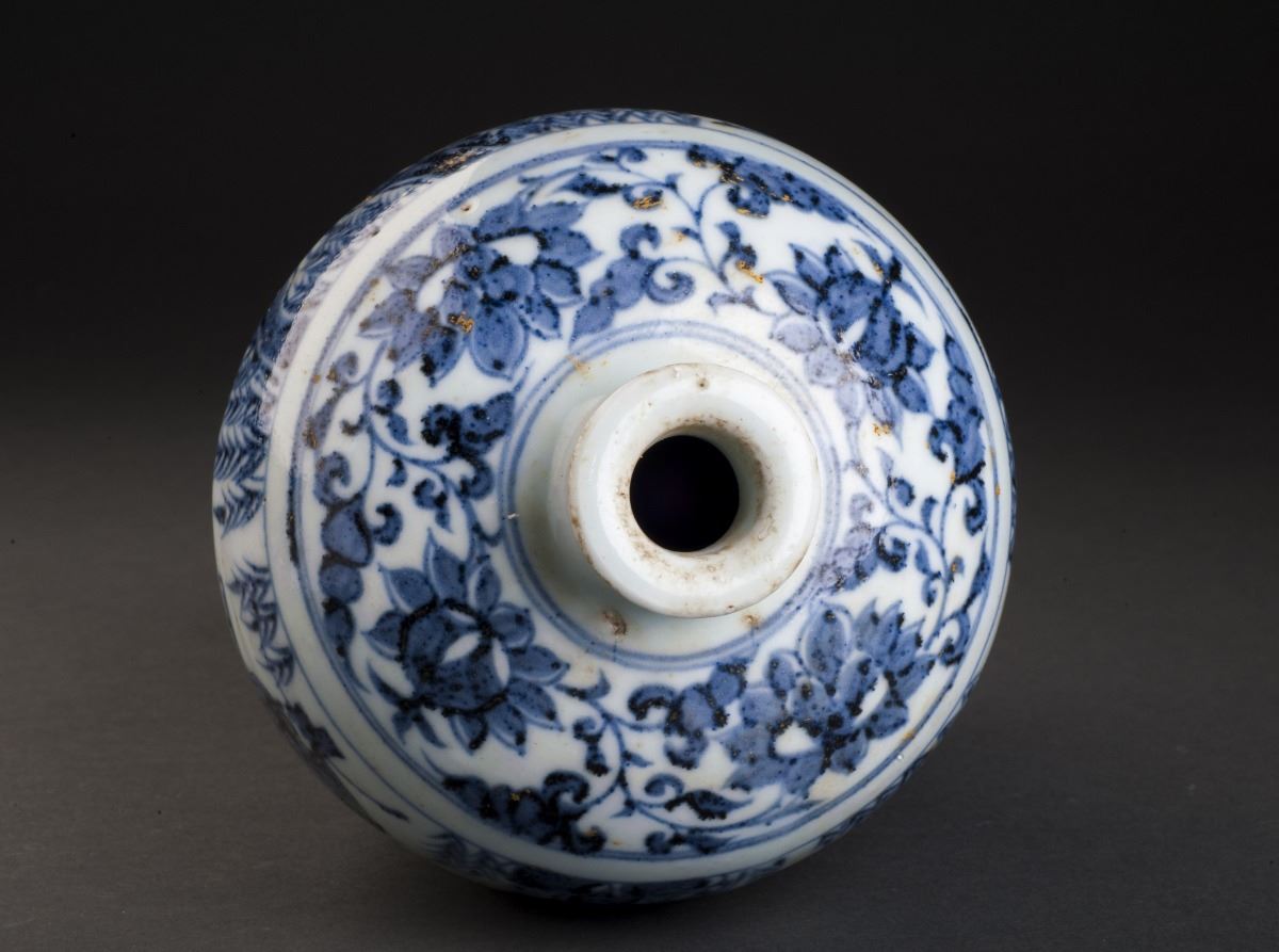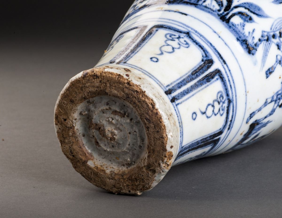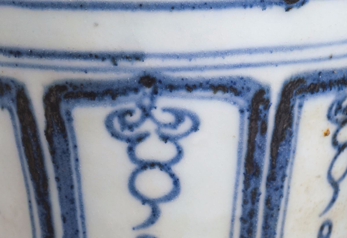 Finely Potted Globular Body With The Delicate Painted Feature Pattern. The Cavetto Amusingly Painted In Vivid Under Glaze Blue With A Continuos Scene Of A Person Holding A Long Ax And Dressed In Long Lobe, While TheOther Dignitary Riding On A Horse And Turning His Head Slightly To The Back. All Set Within A Landscape Of Trees And Flowers. Decorated With The Flower Band Around The Neck And Round Shoulders.