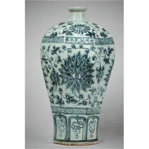 Blue and White Porcelain Octagon Shape Mei-Ping with Mark. Circa 1900. Very good condition.