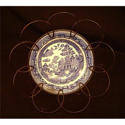 English Blue and White Transferware Staffordshire mounted on Wire Stand Circa. 1920 - 1930