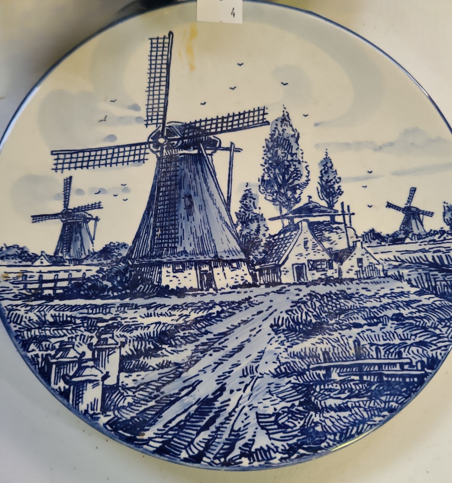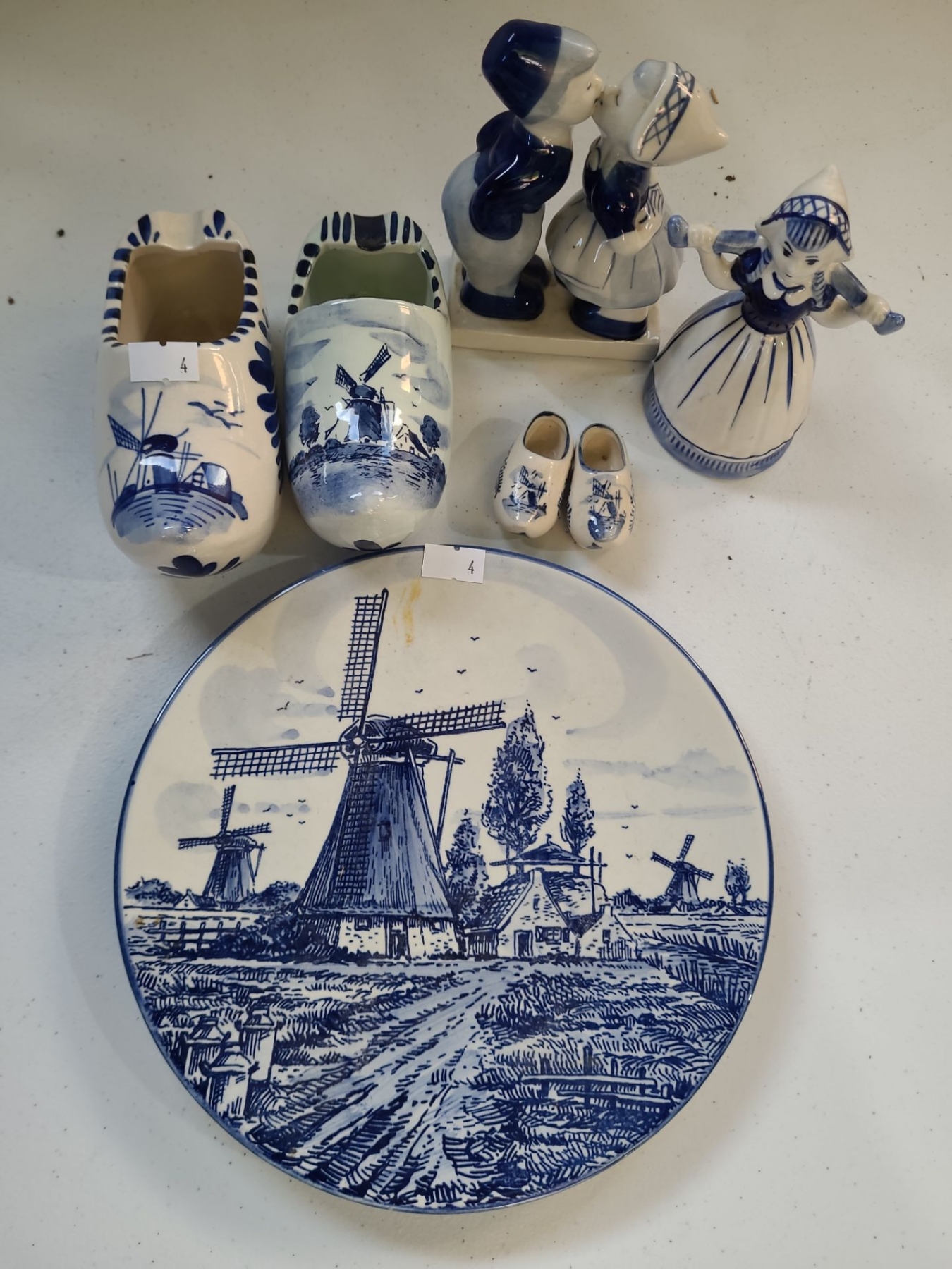 Blue and White: Windmill Plate 8" Diameter, Girl 5 T, Clogs- Largest: 5.5 W, 2.5 D, 3 T