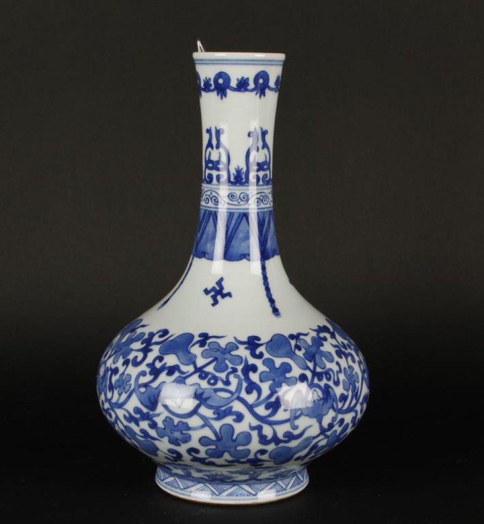 Blue and white Kang Xi marked vase; marked; approximately 9.5” in height. Est.: $500-$1,000.